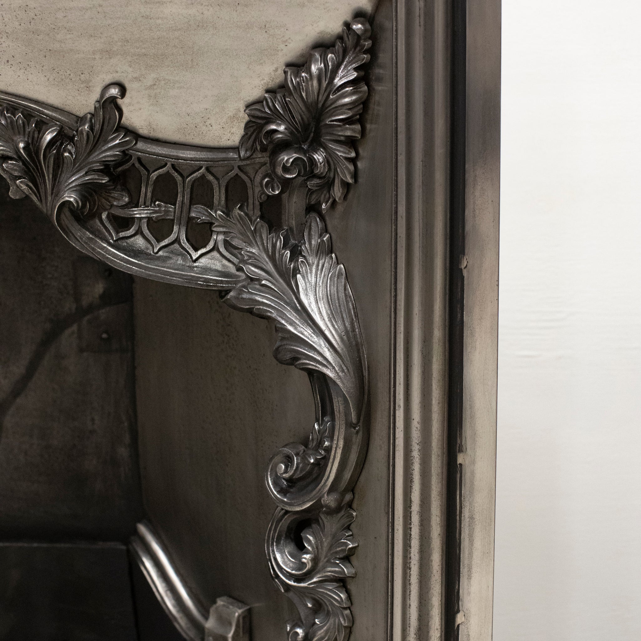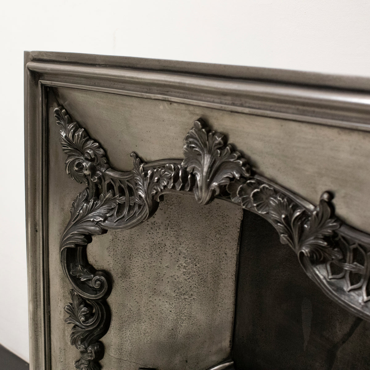 This original William IV register grate is embellished with ornate acanthus detailing throughout the hood of the opening.