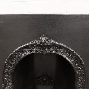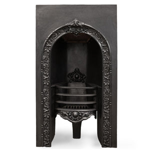 This antique Victorian cast iron grate offers an ornate fireplace insert to add to a chimneypiece renovation.
