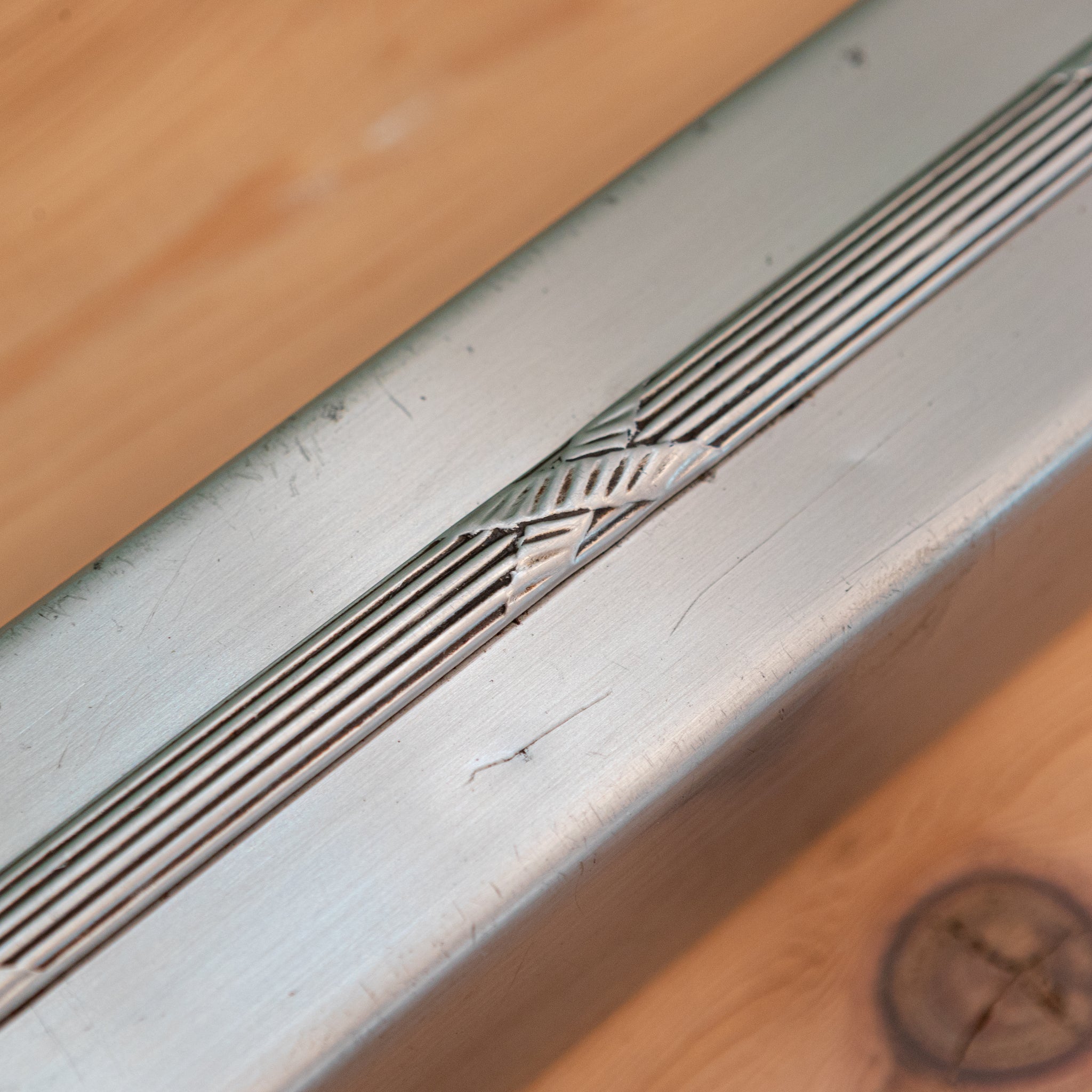 The understated geometric design is typical of the Art Deco movement and the fender has a decorative motif of lines and crosses to the top of the piece.