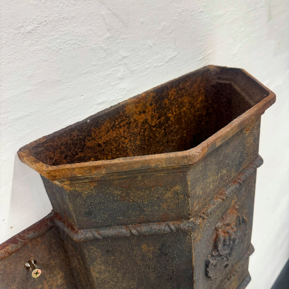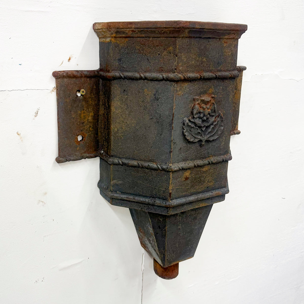 This cast iron water hopper boasts antique originality and can be used for various decoration purposes. Its ability to fit flush against the wall makes it an ideal choice for creating a unique and space-saving planter, allowing you to bring some greenery or flowers into your home while also adding a decorative element to your wall.