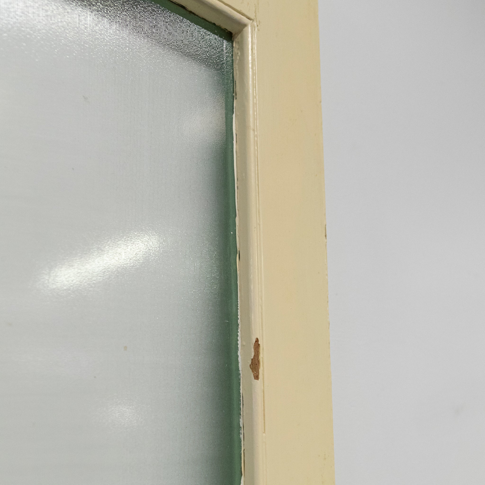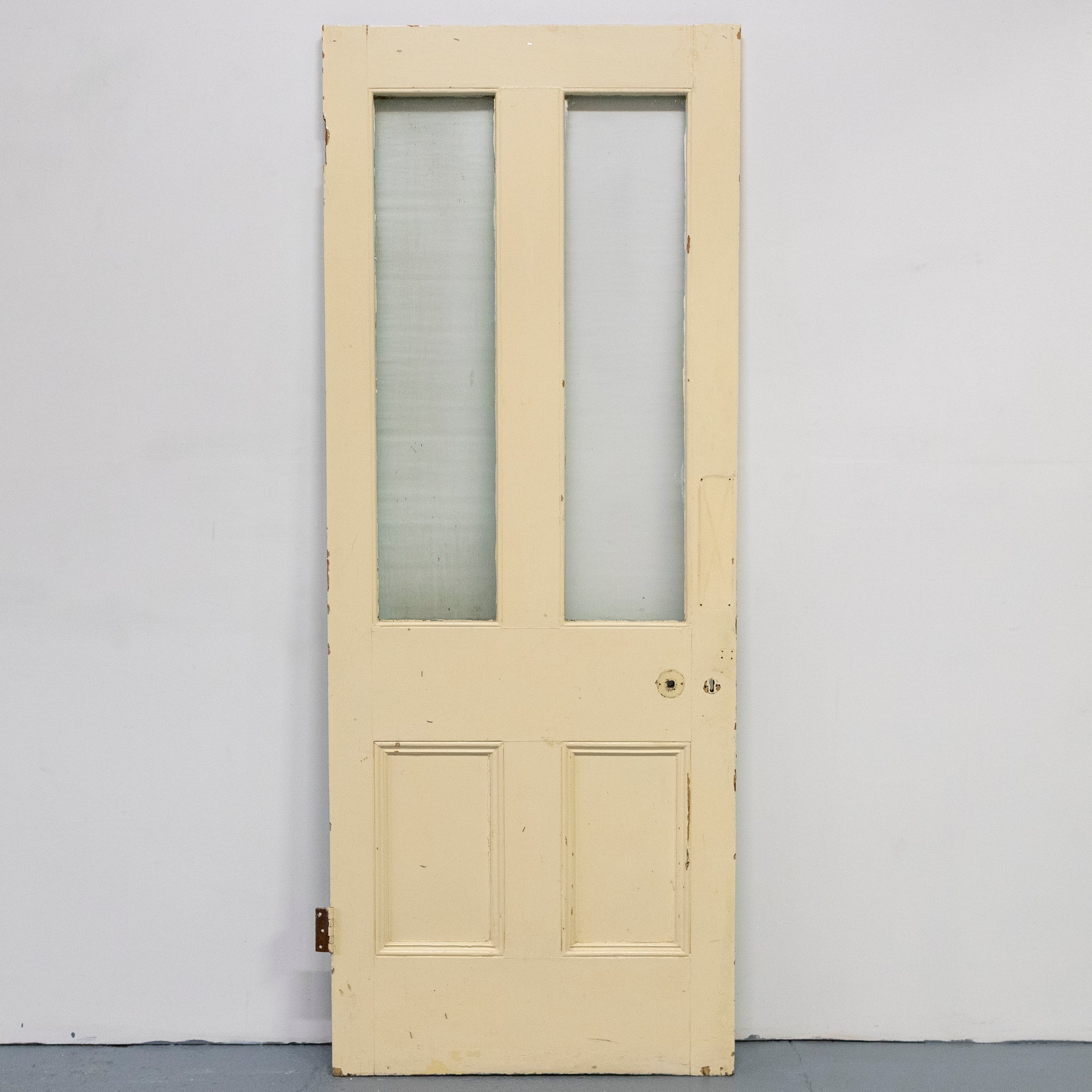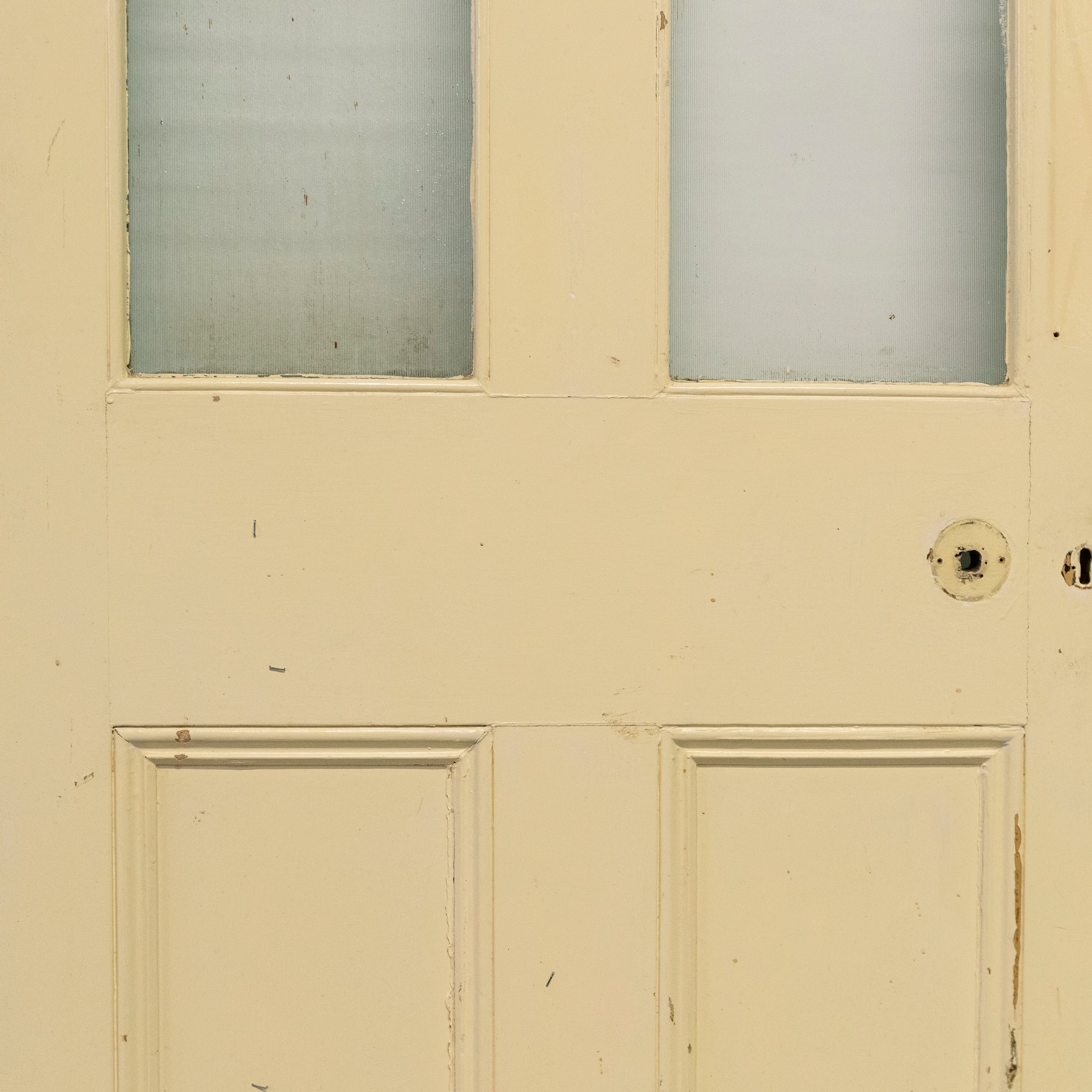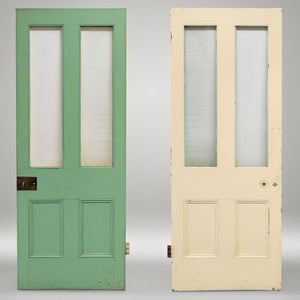 This antique Victorian door has an upper glazed panel with and textured glass.