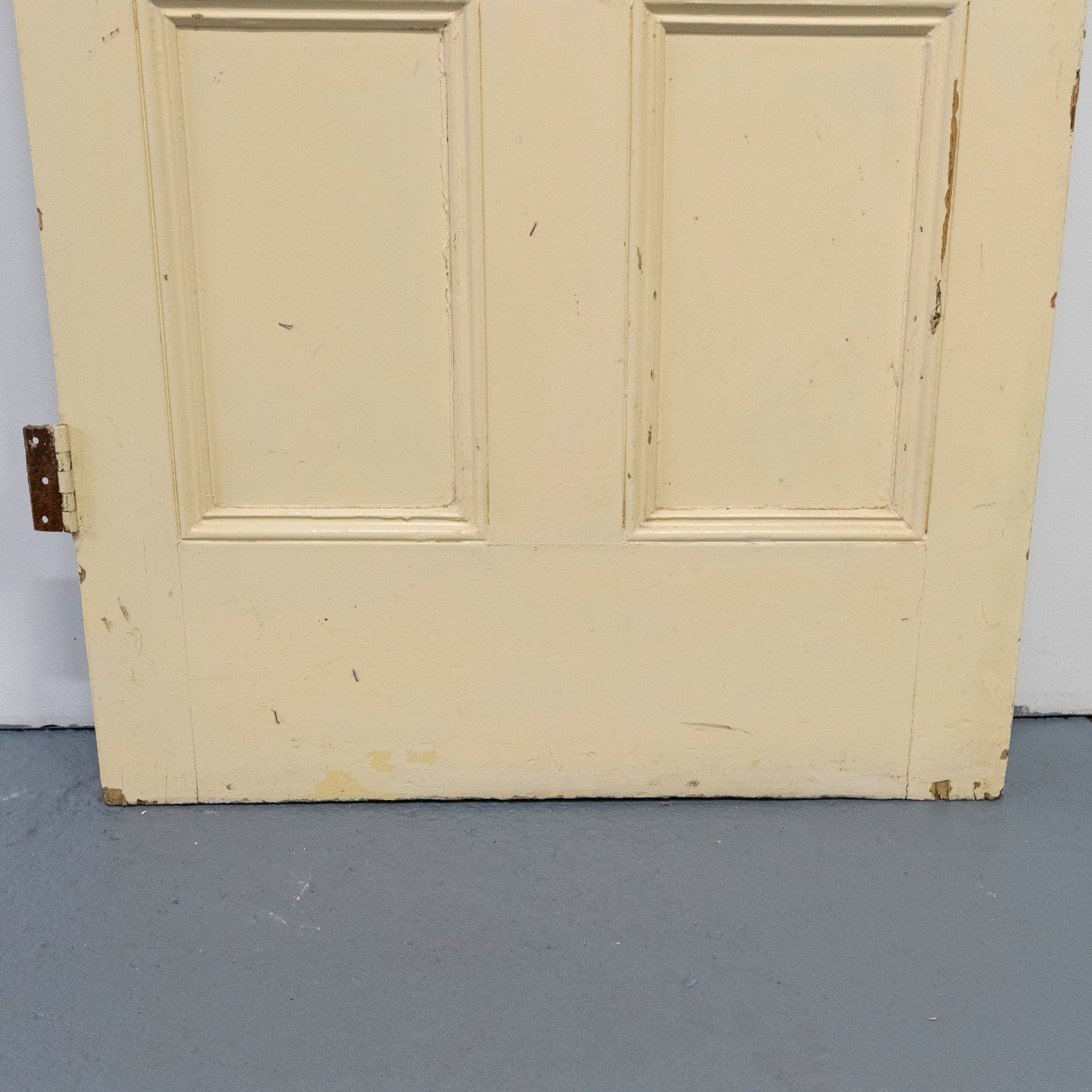 The reclaimed door comes in its current painted state.
