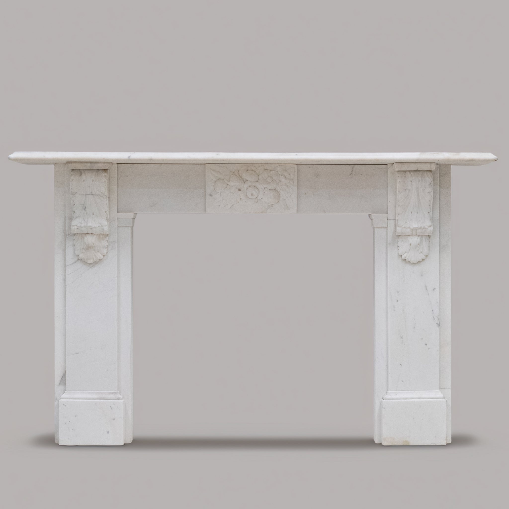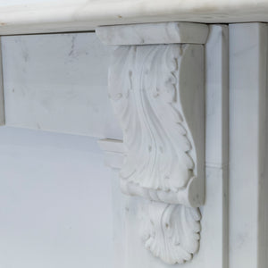 Presenting an exceptional Victorian marble fireplace, expertly carved from Carrara marble.