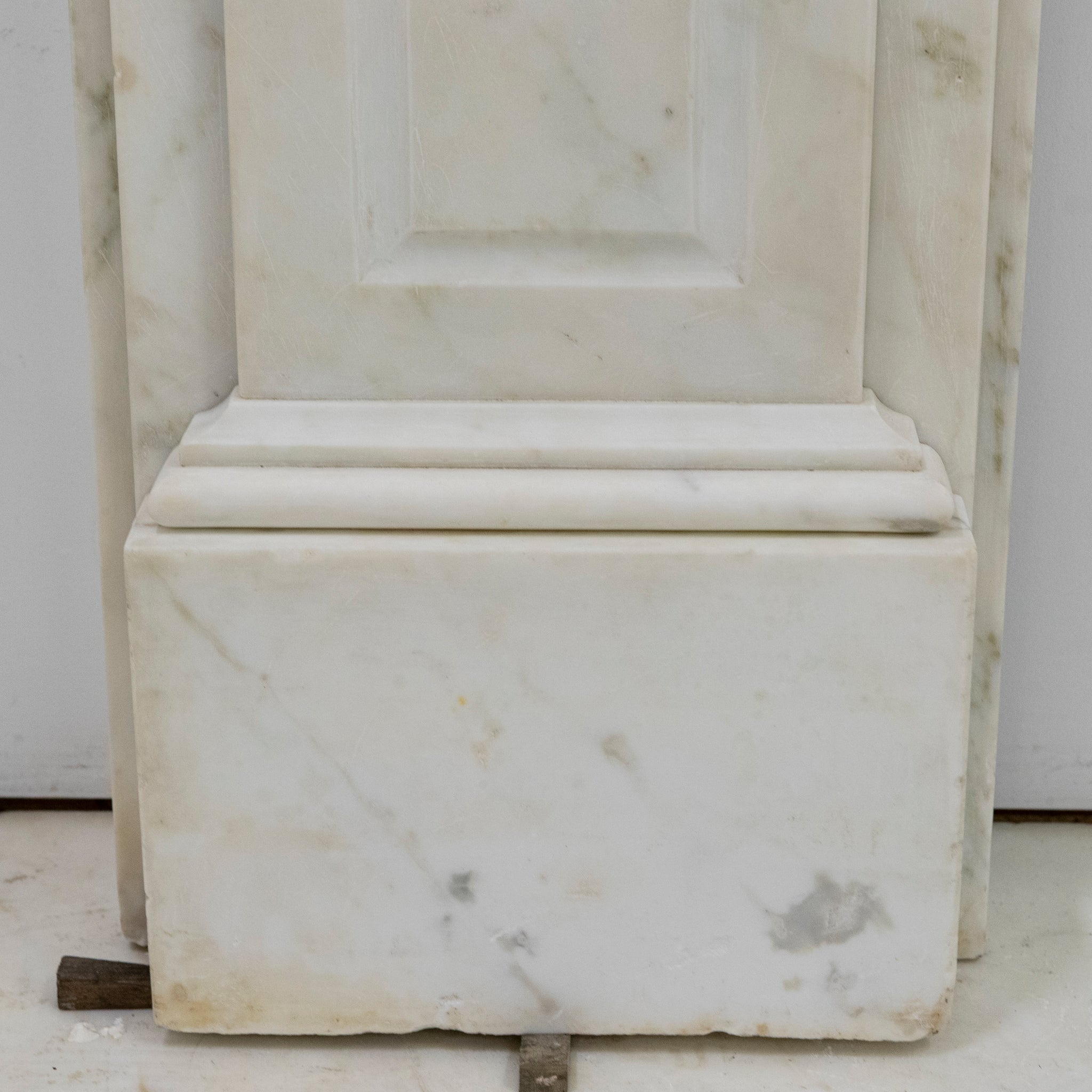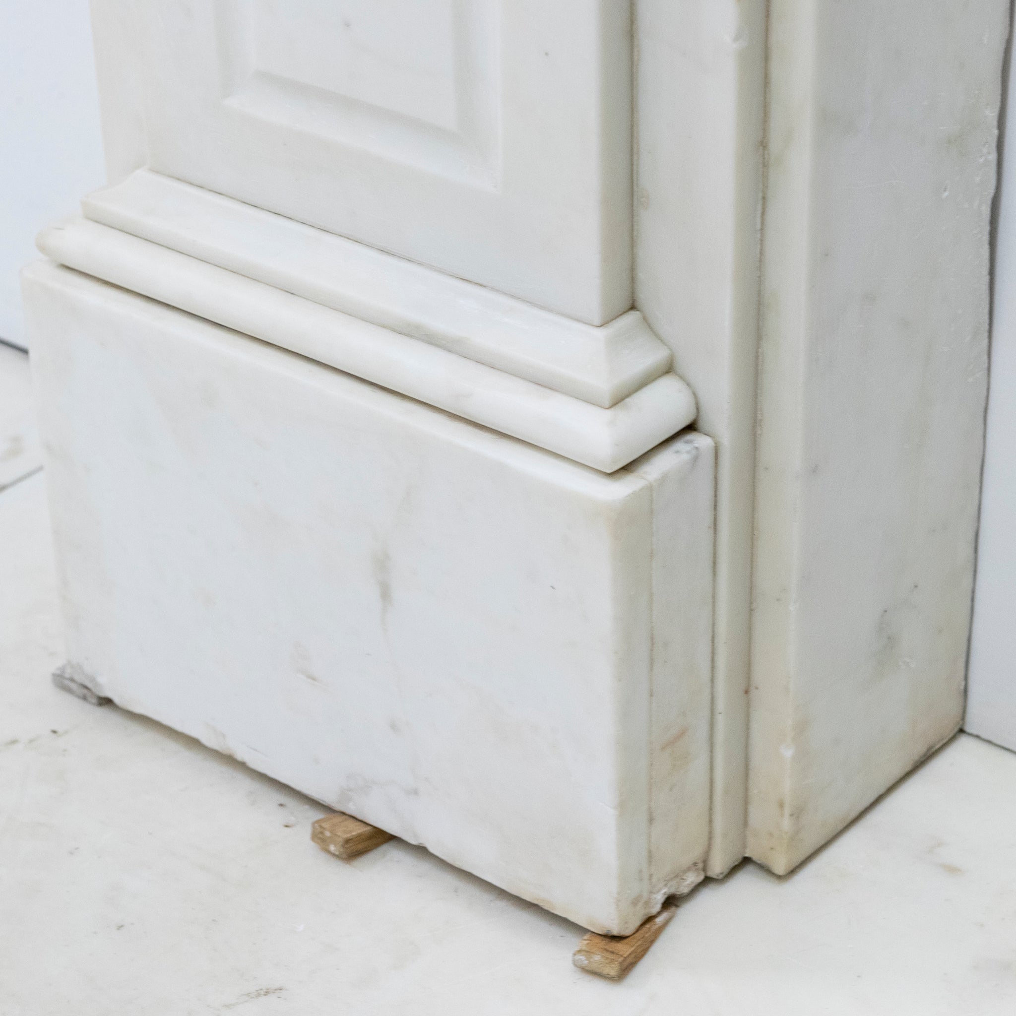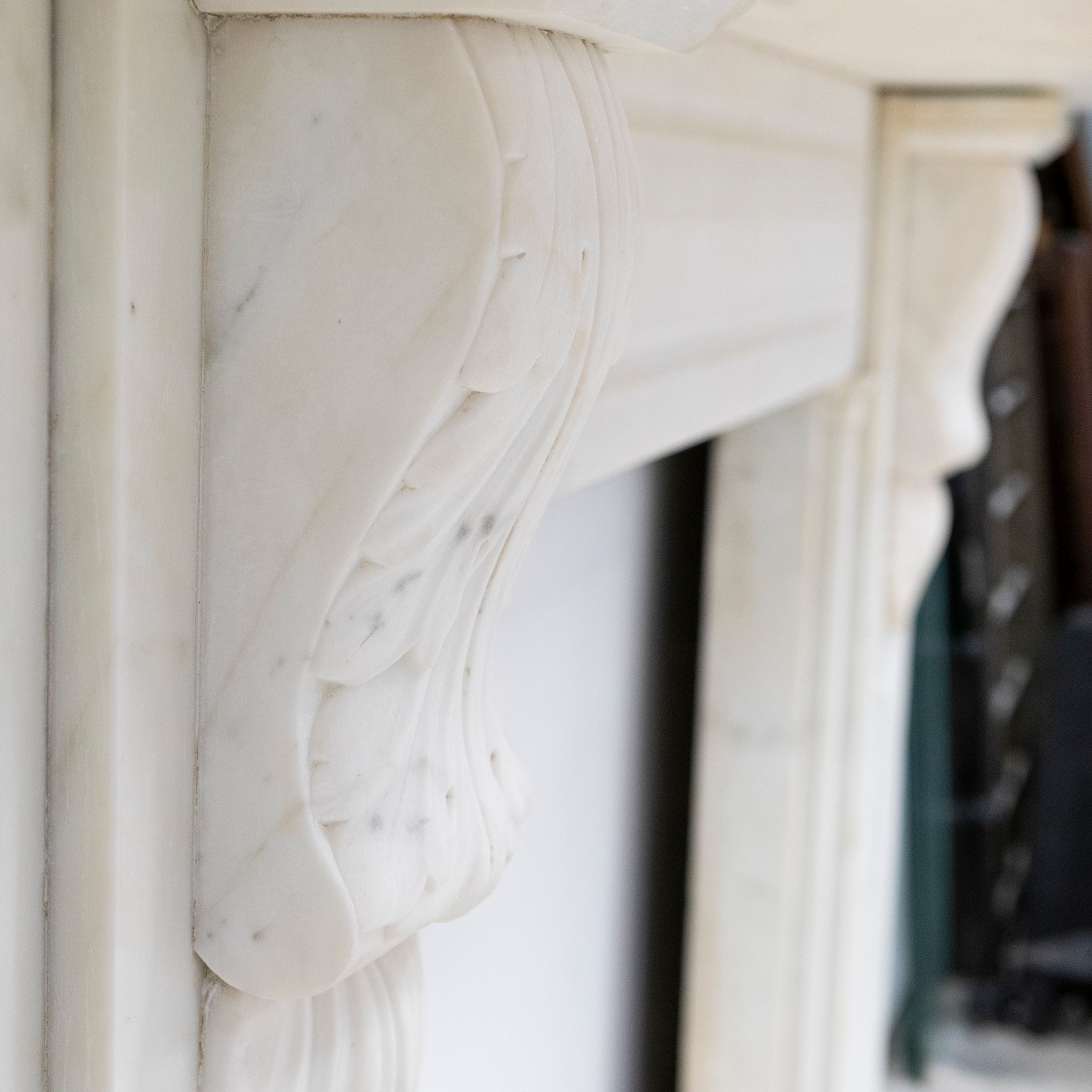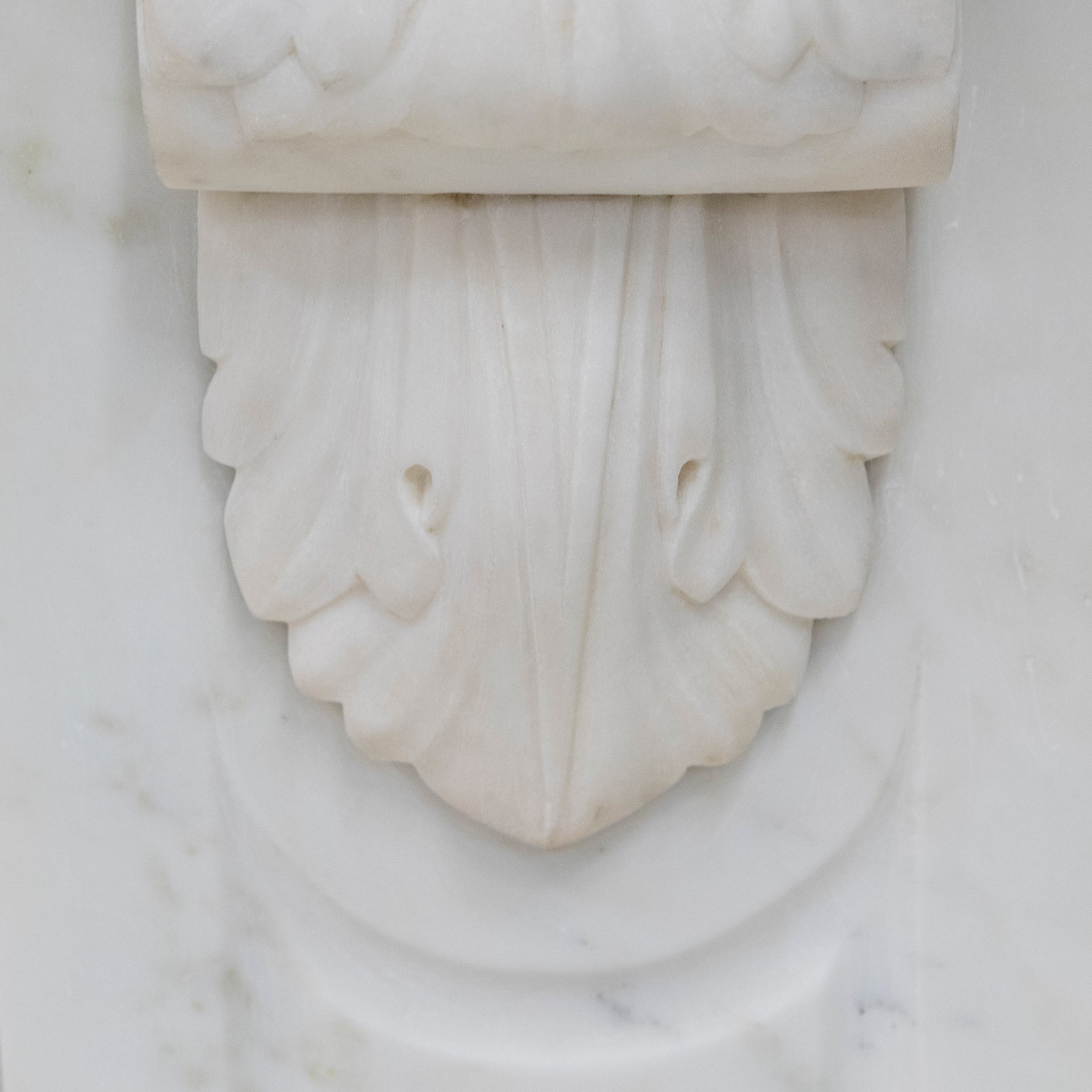 This exceptional large 19th-century Victorian fireplace surround is masterfully carved in Statuary marble, embodying the refinement and craftsmanship of the era. The mantel features ornate corbels. The frieze and jambs and panelled details.