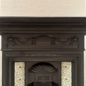 This original antique cast iron combination fireplace has been fully restored in-house and is ready for installation and use.