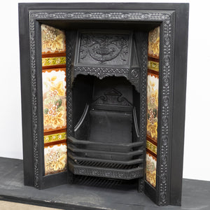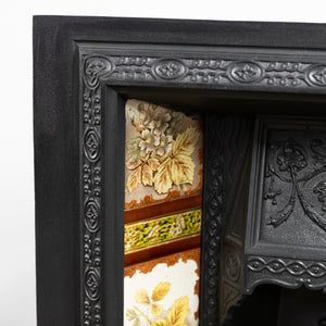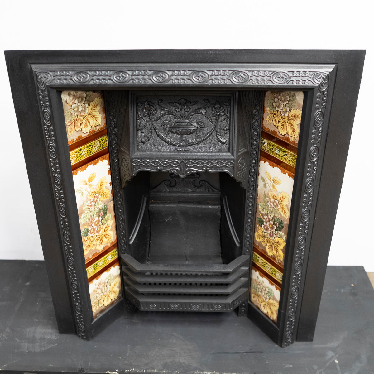 This pretty Victorian piece features floral decoration and includes two panels of original tiles to either side of the basket.