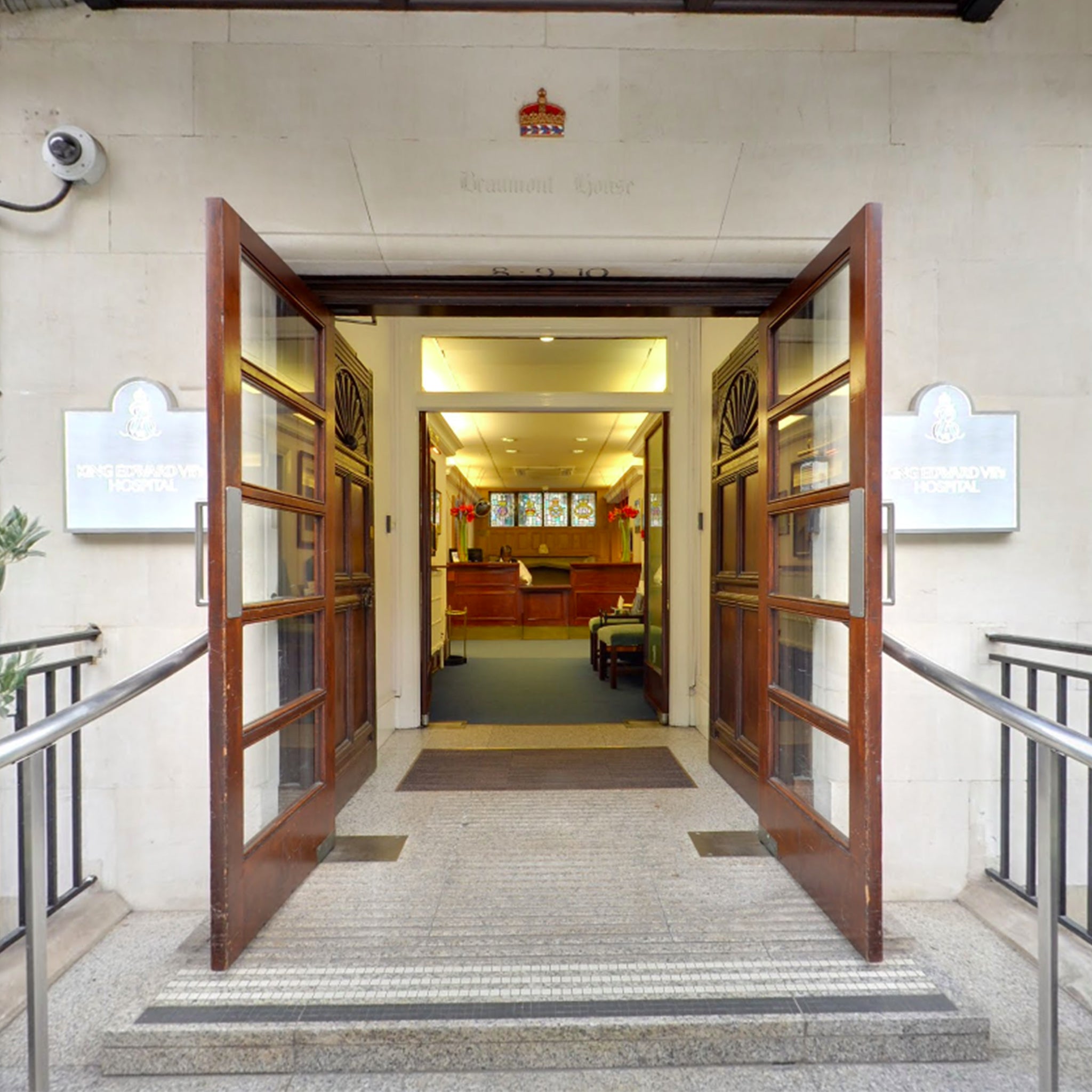 Carved Wooden Tudor Style Double Doors from King Edward VII Hospital