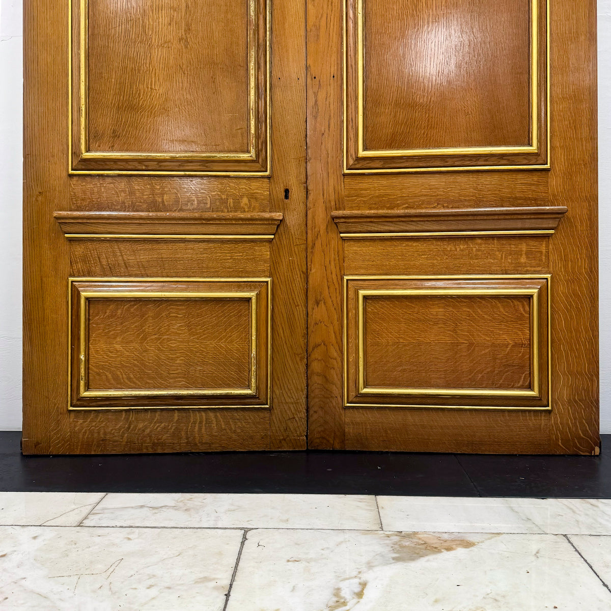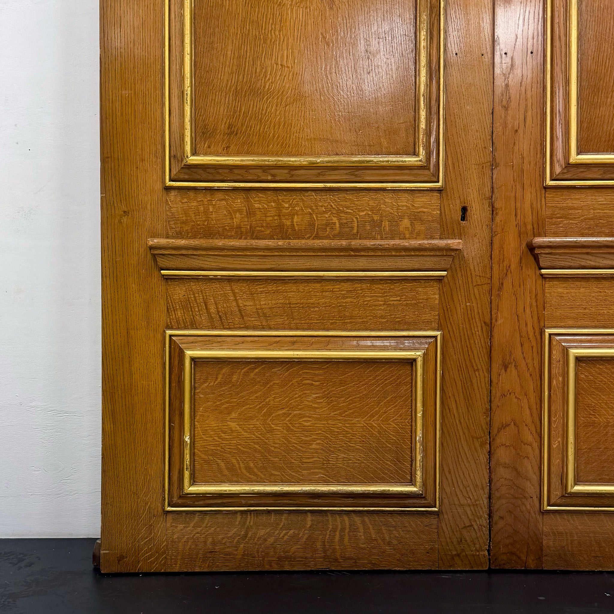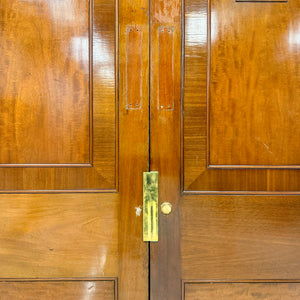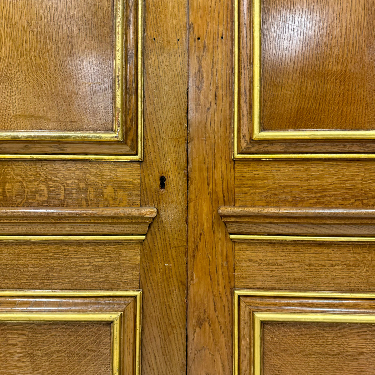 The grand paired door is a stunning piece, boasting intricate details of gold guilt around the beading on the oak front. While the contrasting mahogany back adds a rich depth to the overall design. The combination of the two materials creates a striking visual effect.