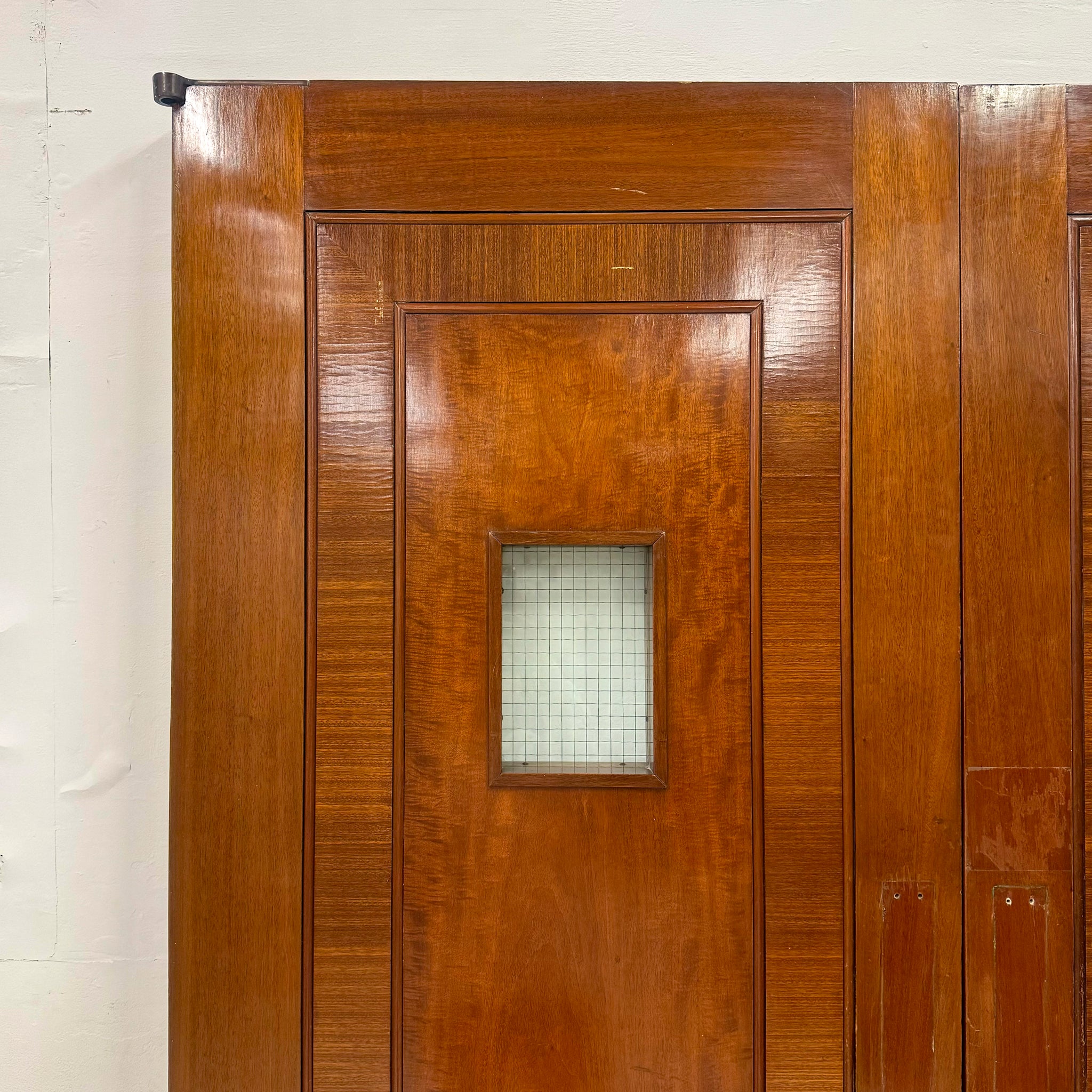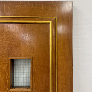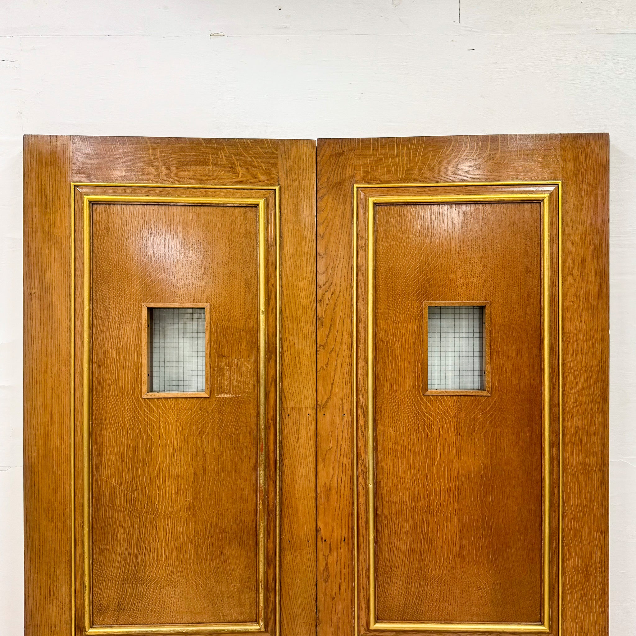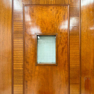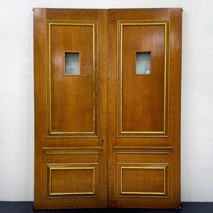The grand paired door is a stunning piece, boasting intricate details of gold guilt around the beading on the oak front. While the contrasting mahogany back adds a rich depth to the overall design. The combination of the two materials creates a striking visual effect.