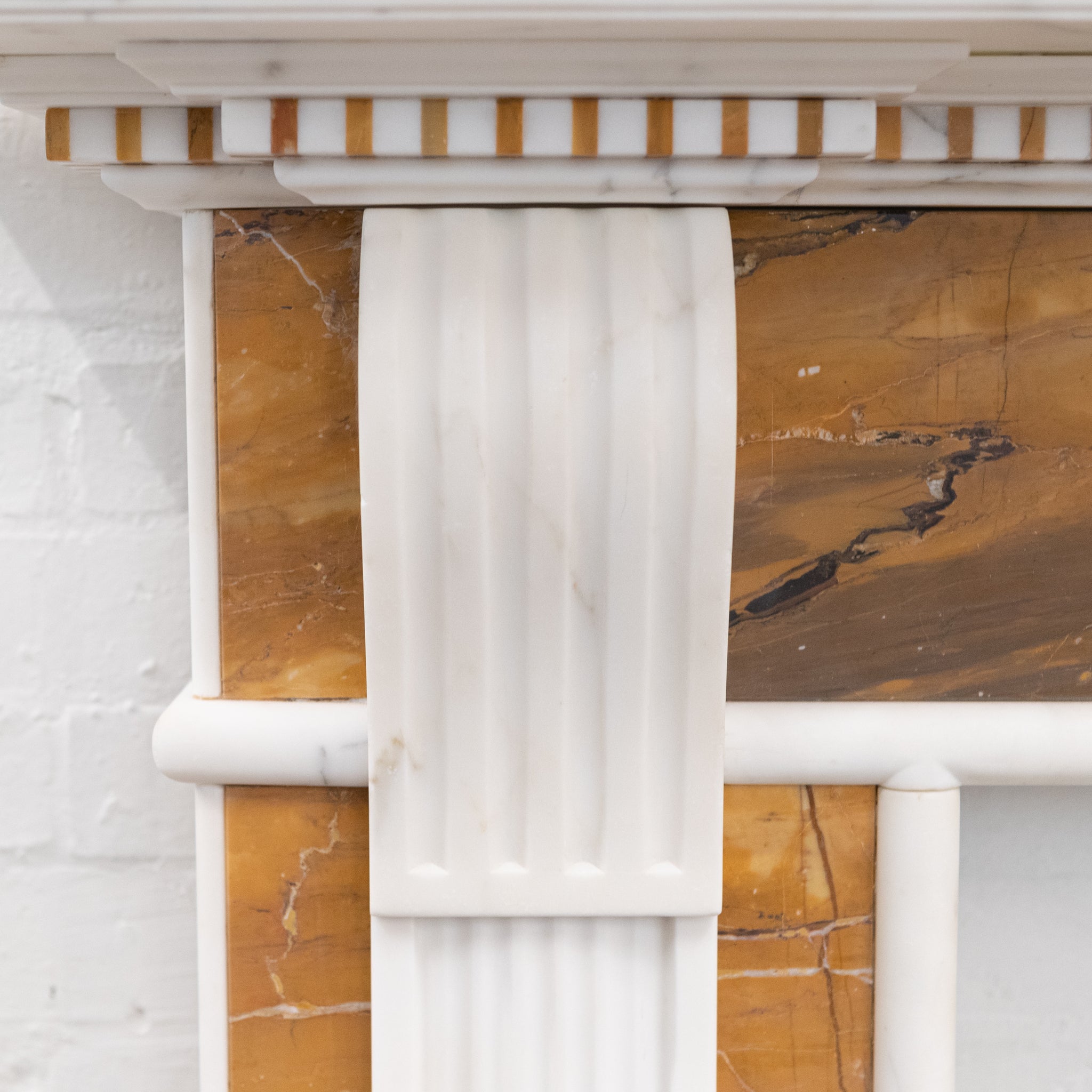 A large and impressive Georgian style fireplace surround crafted from fine Statuary Marble with characterful Sienna marble inlay.