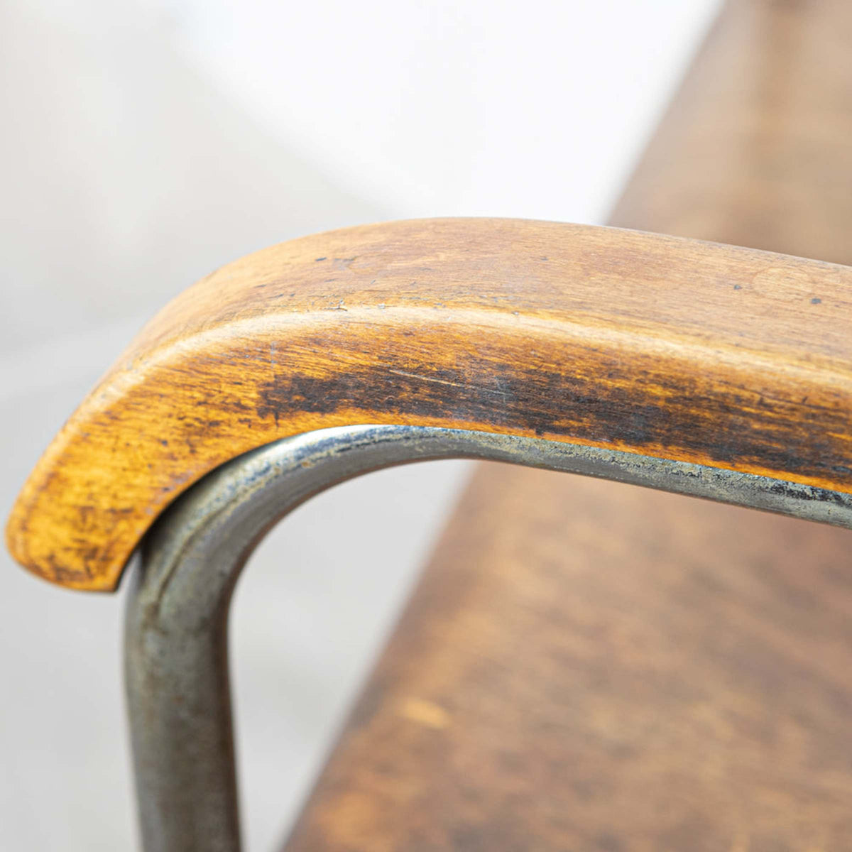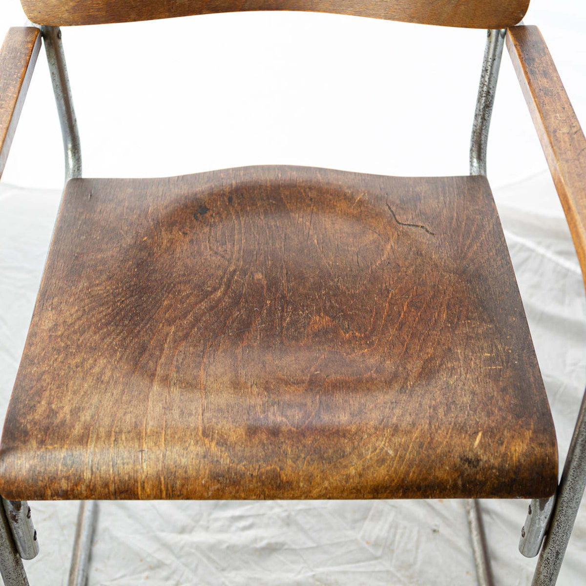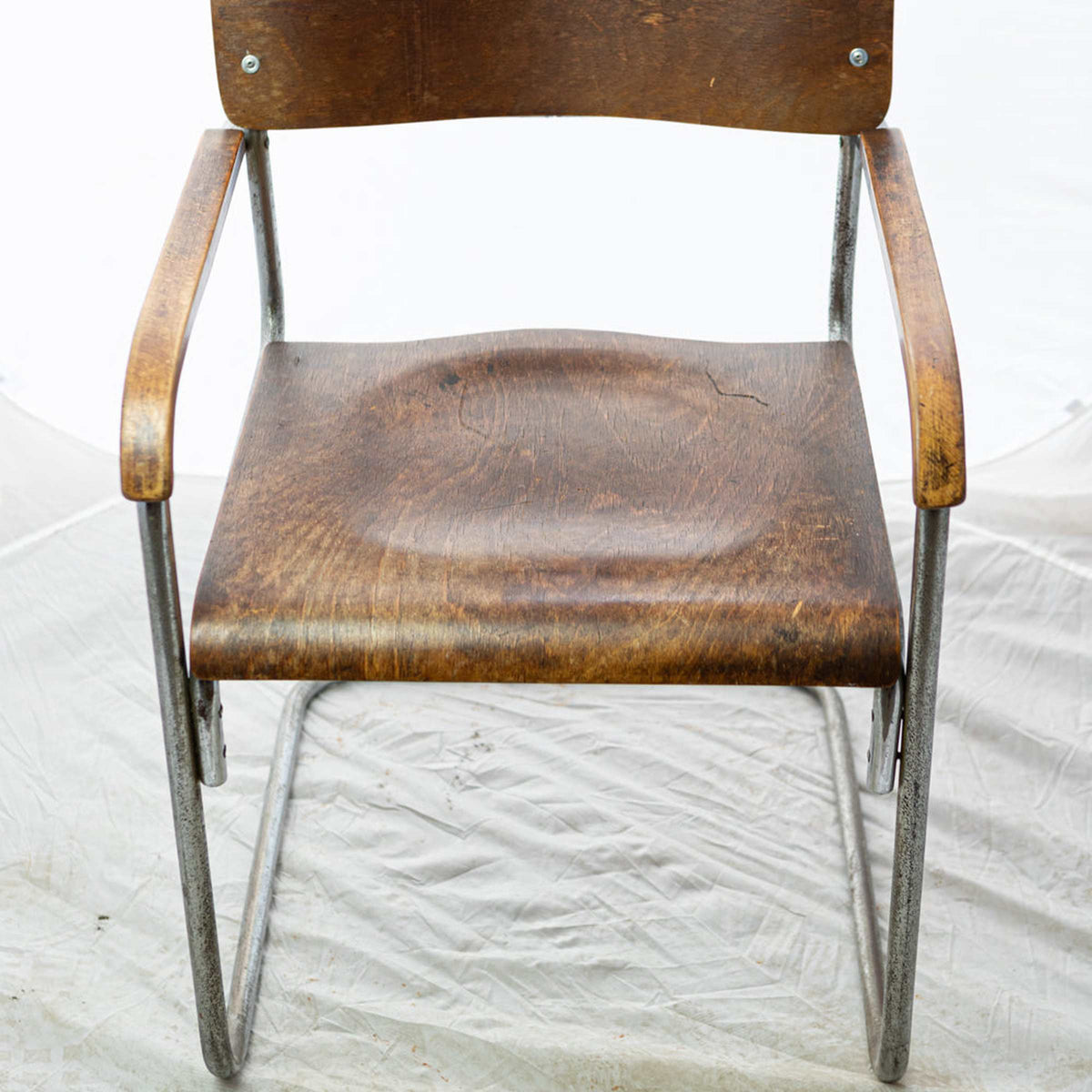 Distinctive and rare, The Bauhaus is a a magnificent chair that offers striking form and iconic style . This particularly rare design has been crafted from a bent wooden seat and chrome base, both of which own a wonderful patina.