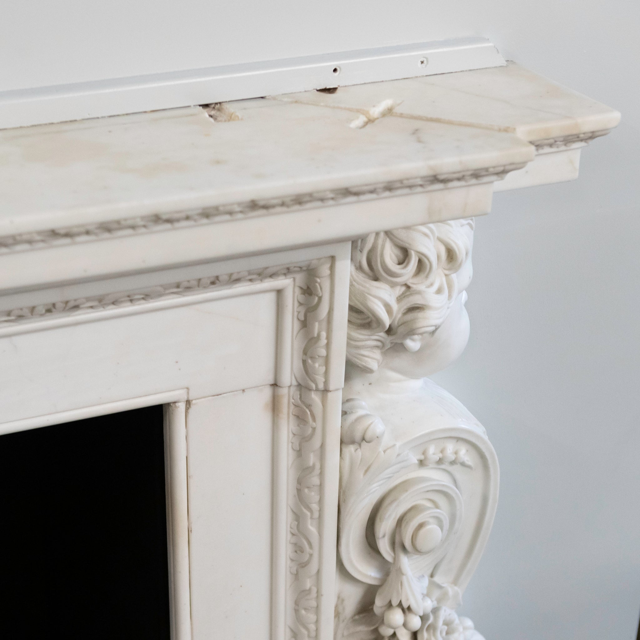 A fine (and still important) example of English Baroque architecture, Appuldurcombe House was built in the early 1700s by John James for Sir Robert Worsley, it's grounds were landscaped by Capability Brown. This surround was held residence in the Drawing room.