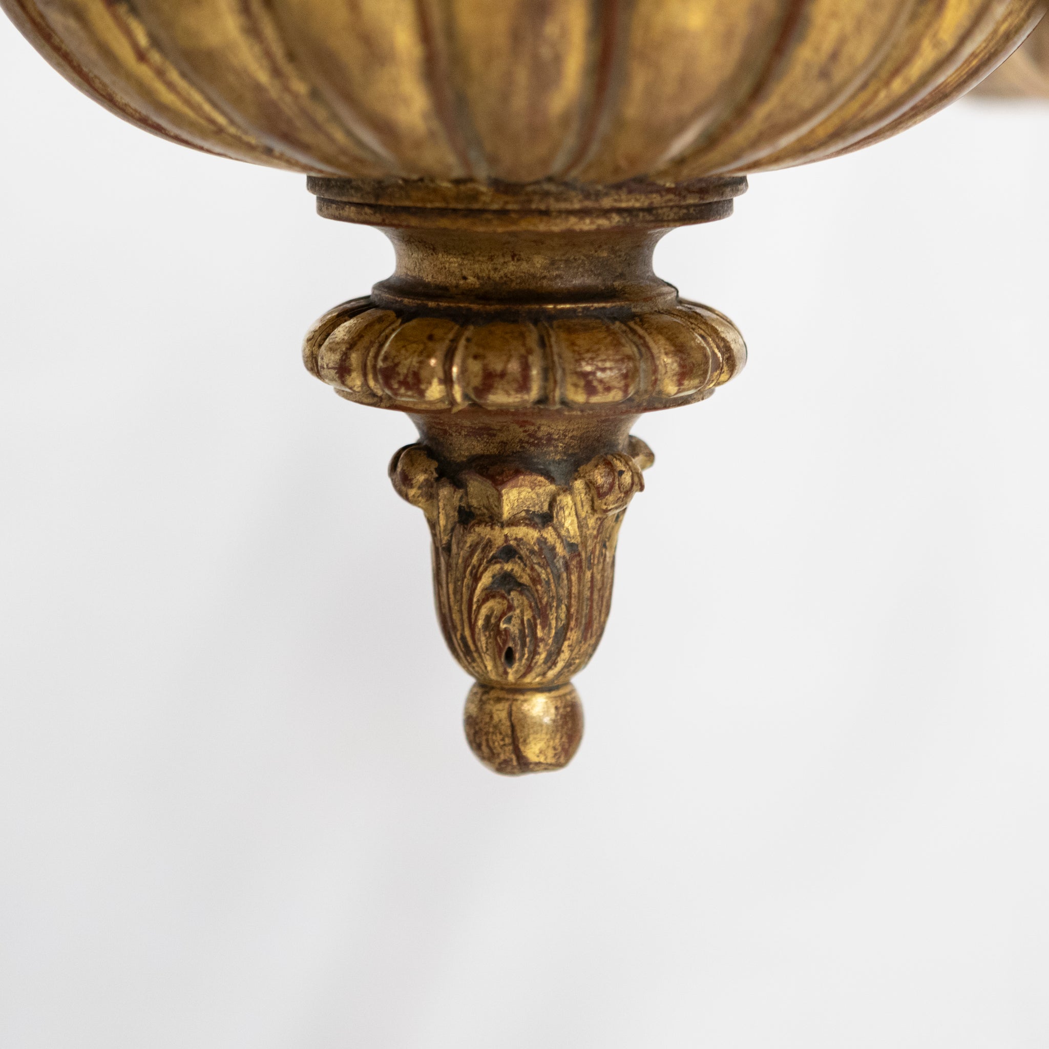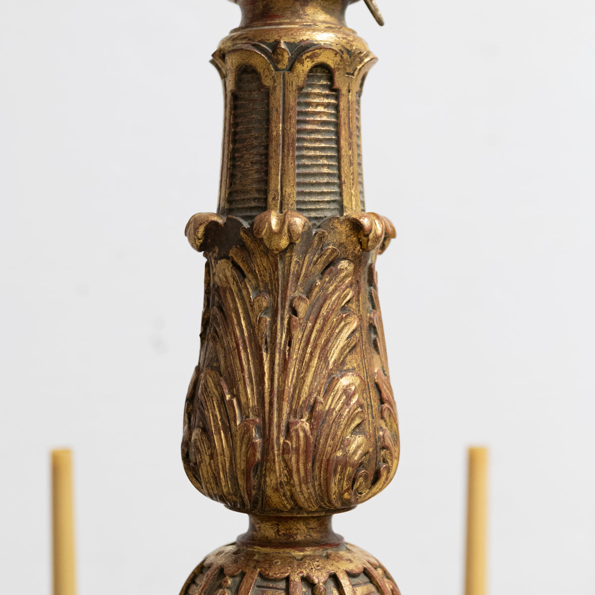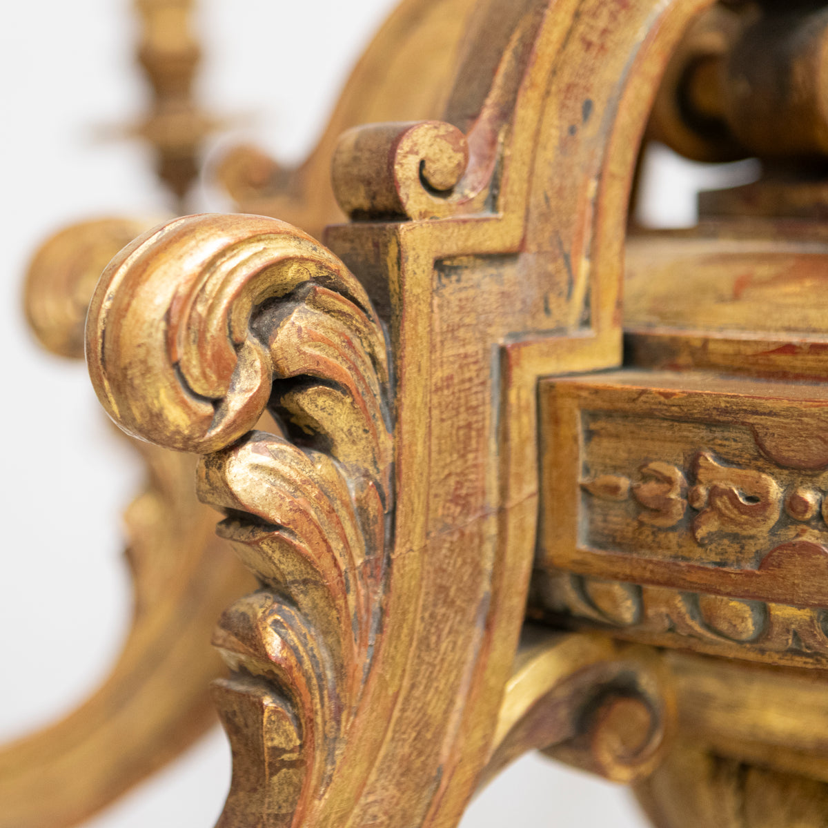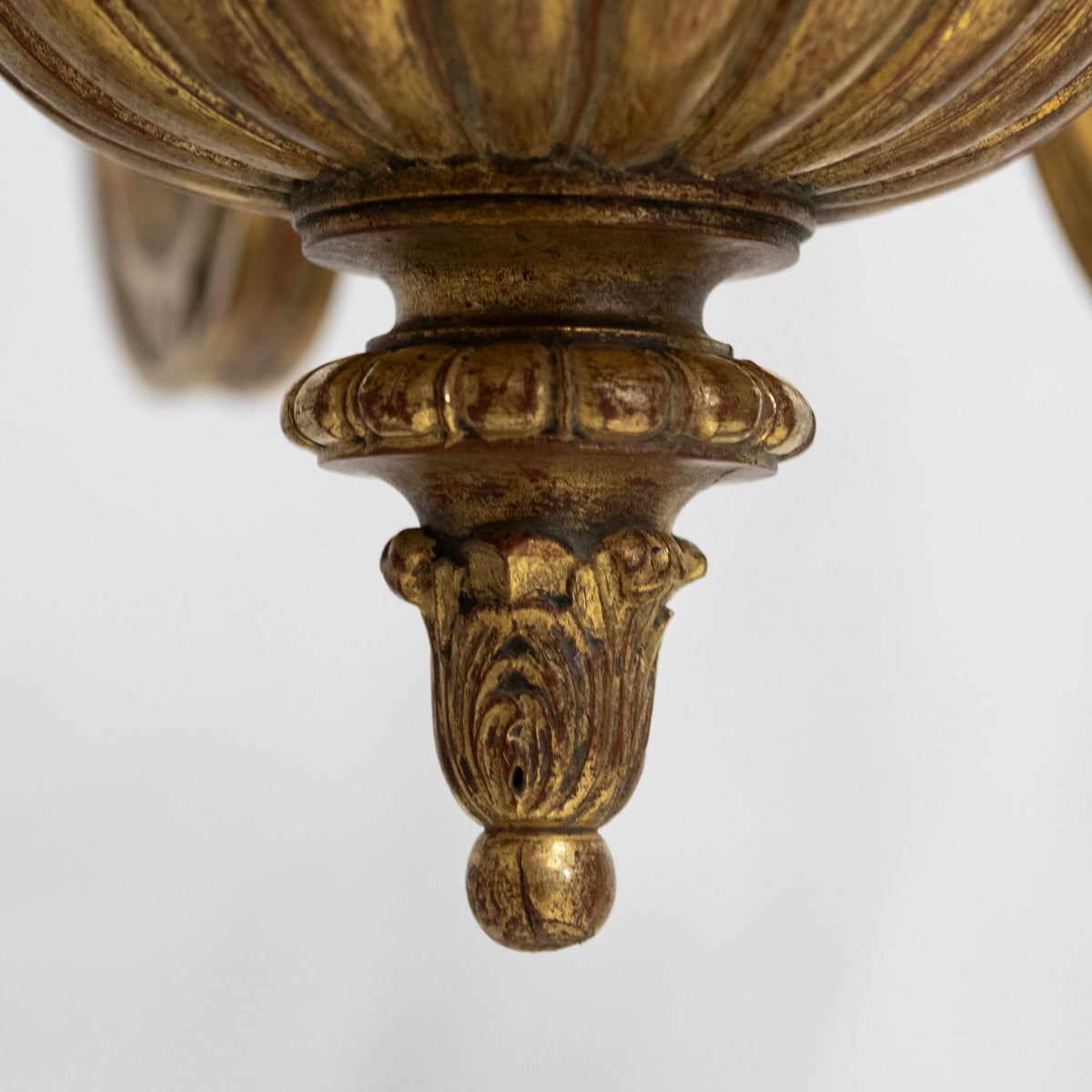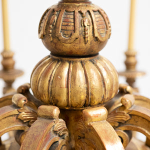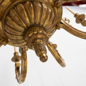 This large mid-19th-century chandelier is composed of 8 ornate giltwood S shape arms.