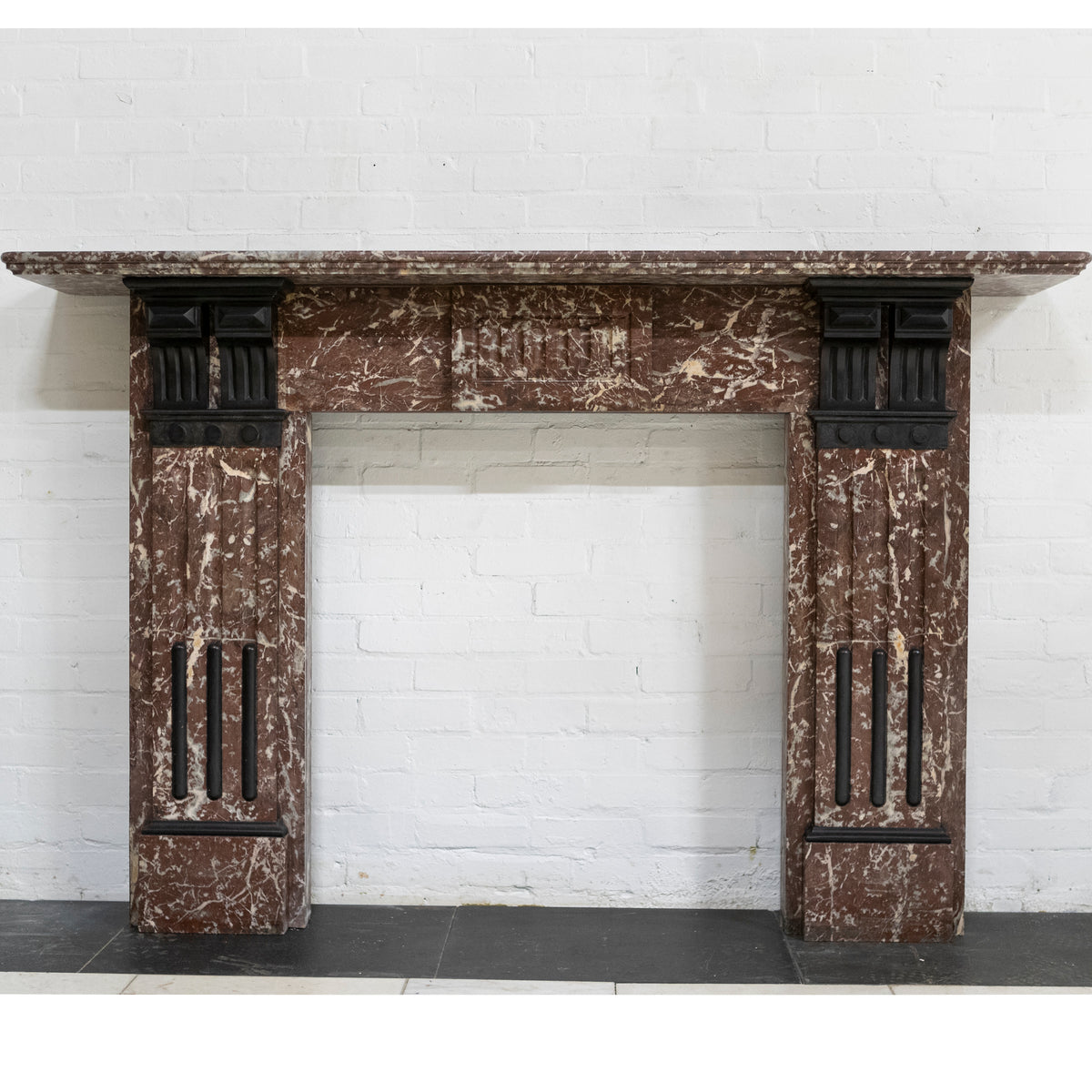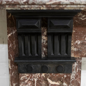 With generous proportions, this impressive antique chimneypiece is carved from Rogue Royal marble.