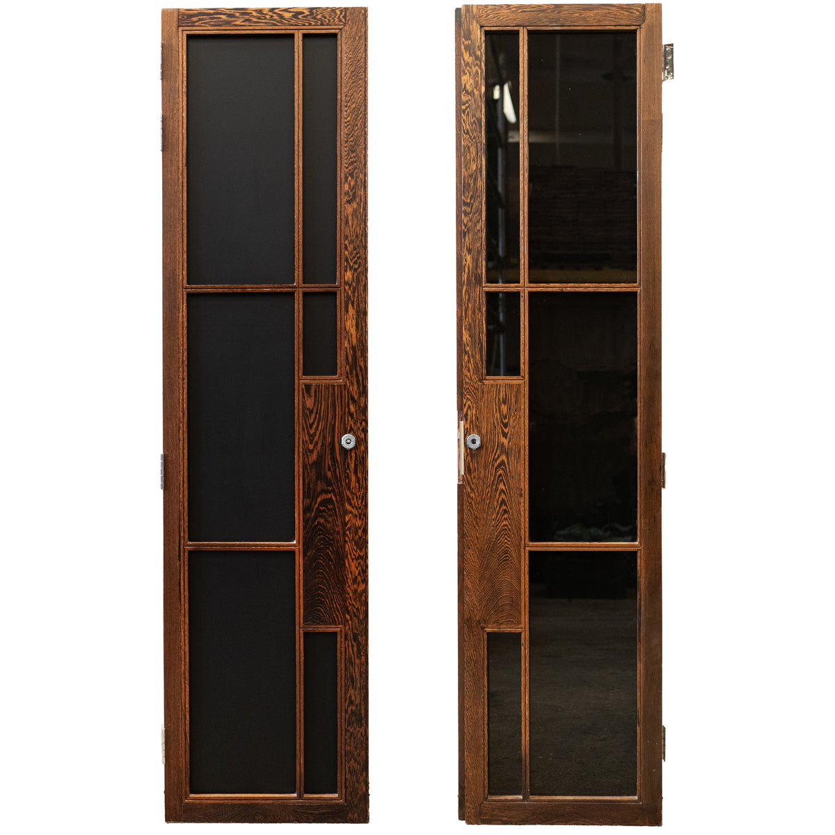 This particular door is a single door (both sides are shown in the main image). The well made and very heavy door has wonderful patination and grain to the rich panga panga timber.