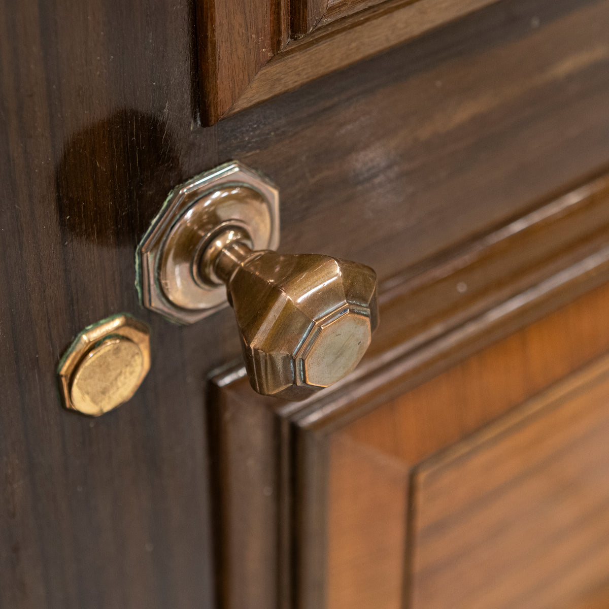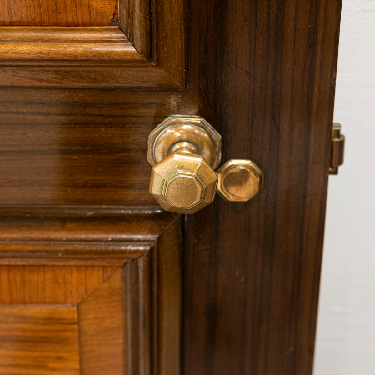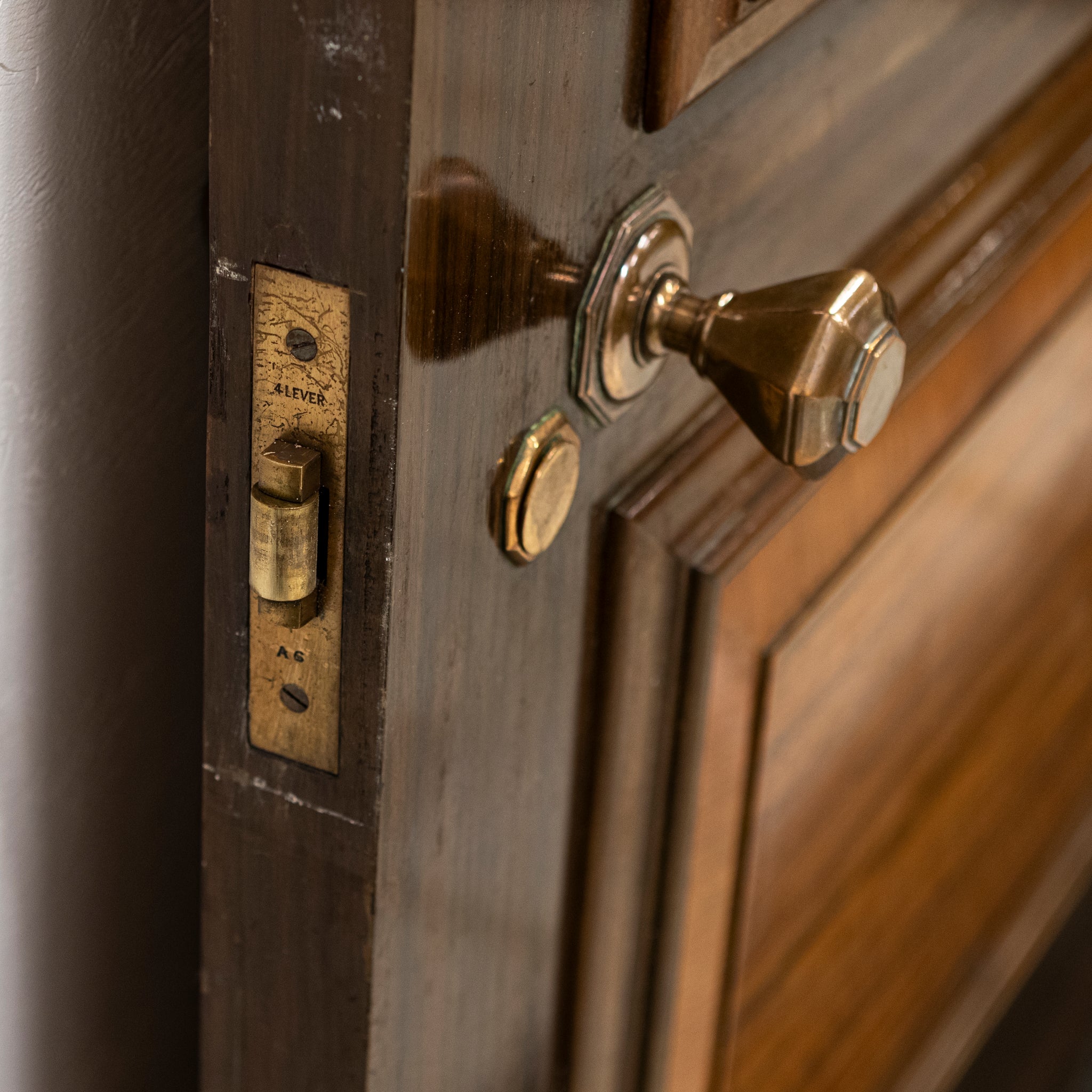 Along with various other pieces, these magnificent walnut doors were reclaimed from the cloakrooms at the Clothworkers' Hall, London.