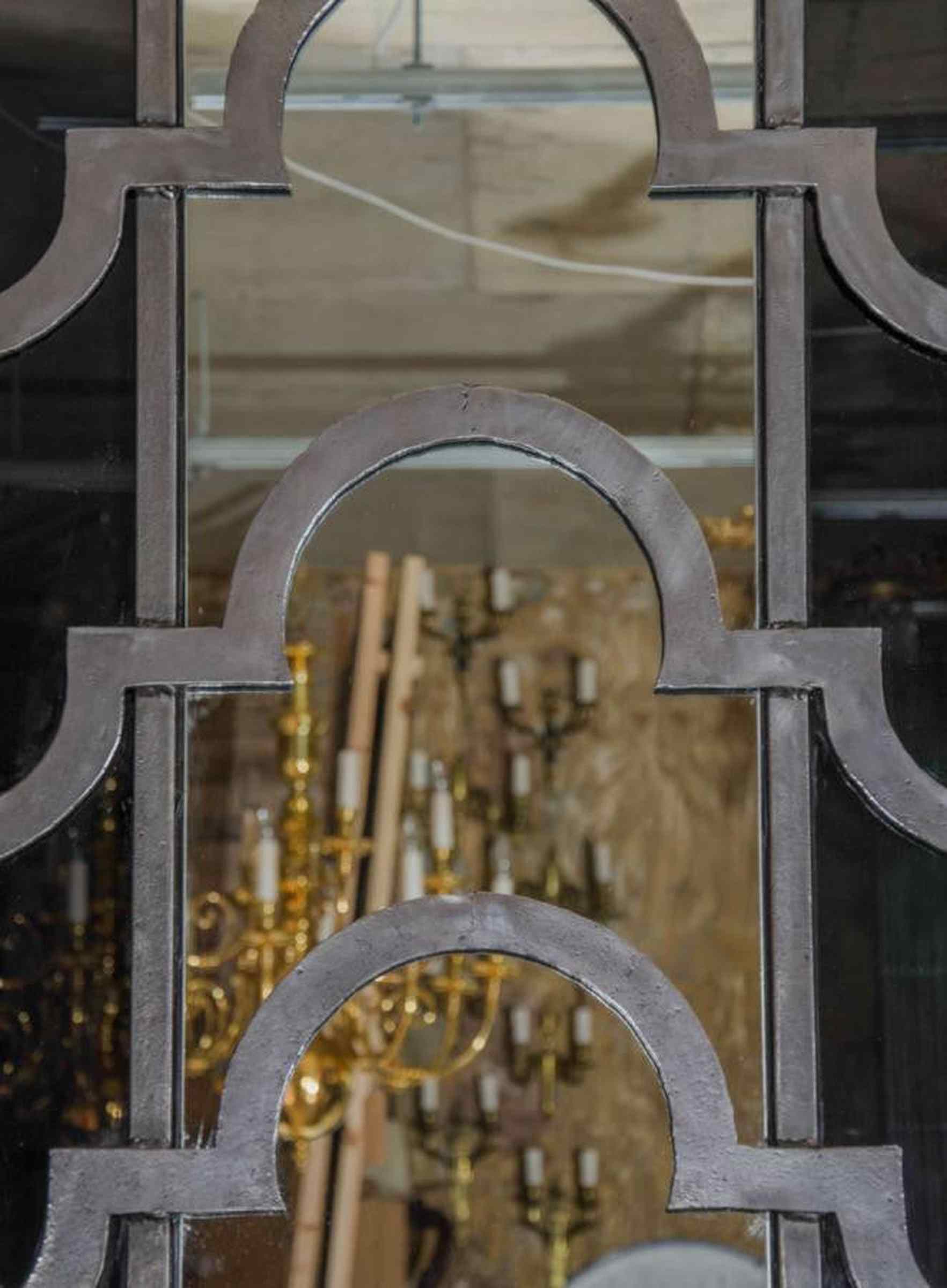 A striking wall mirror created from an antique Art Deco cast iron grill.