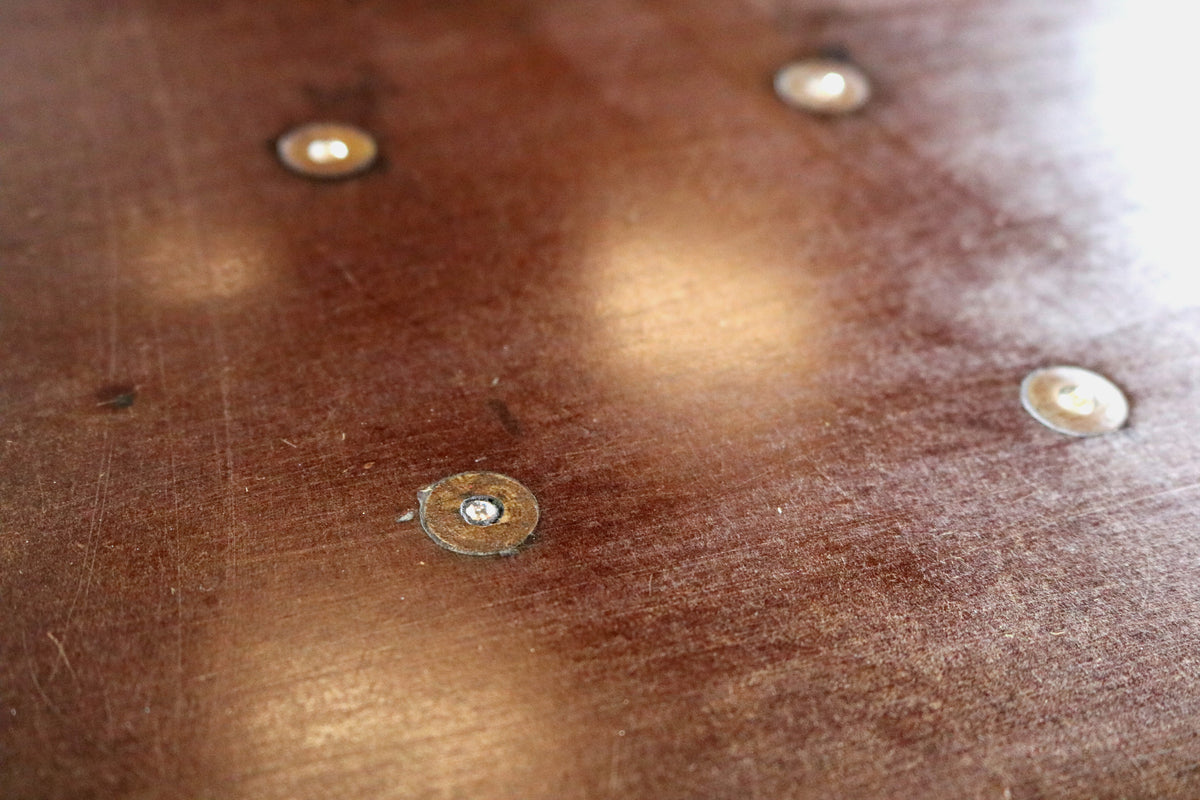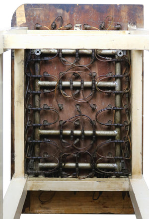 Beneath the tabletop is an intricate network of pipes, the ingenious air cooling system, used to dry prints as they rested upon the ball bearings above.