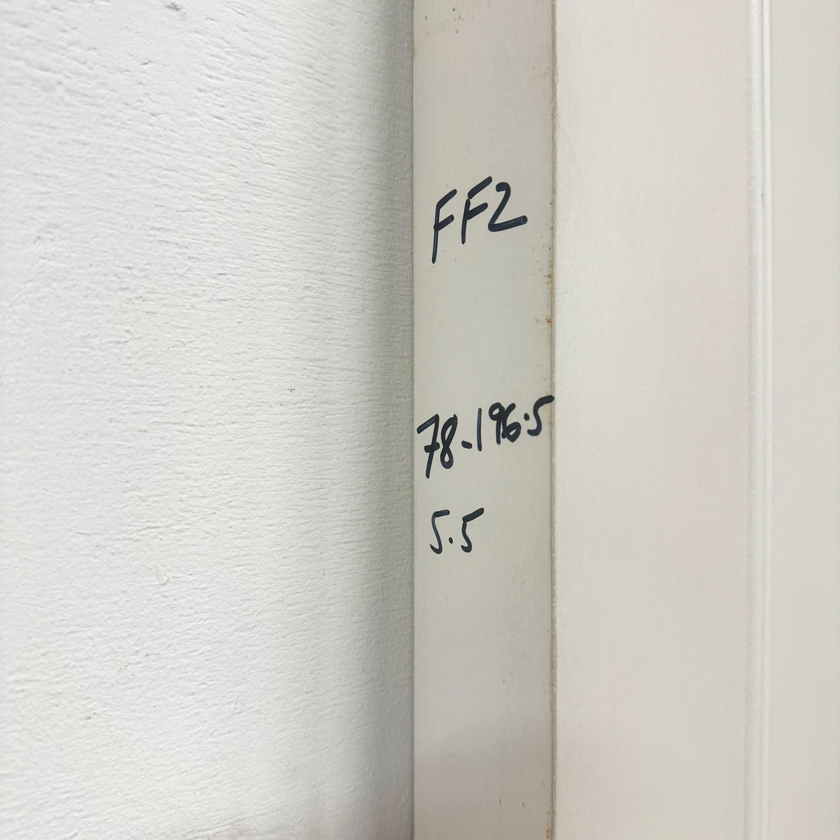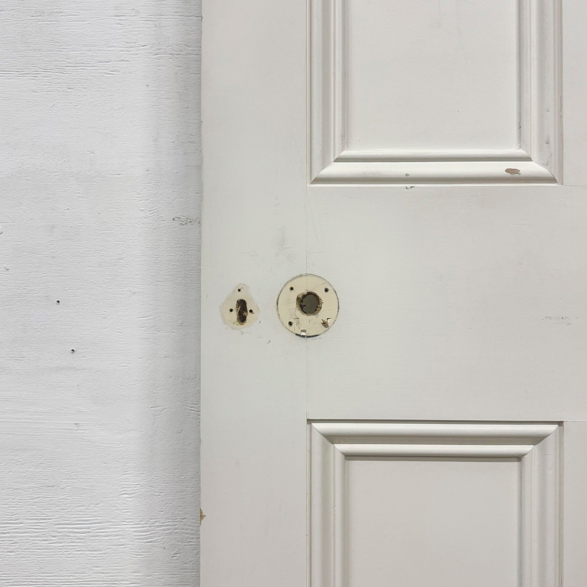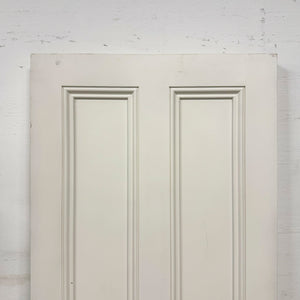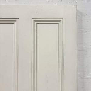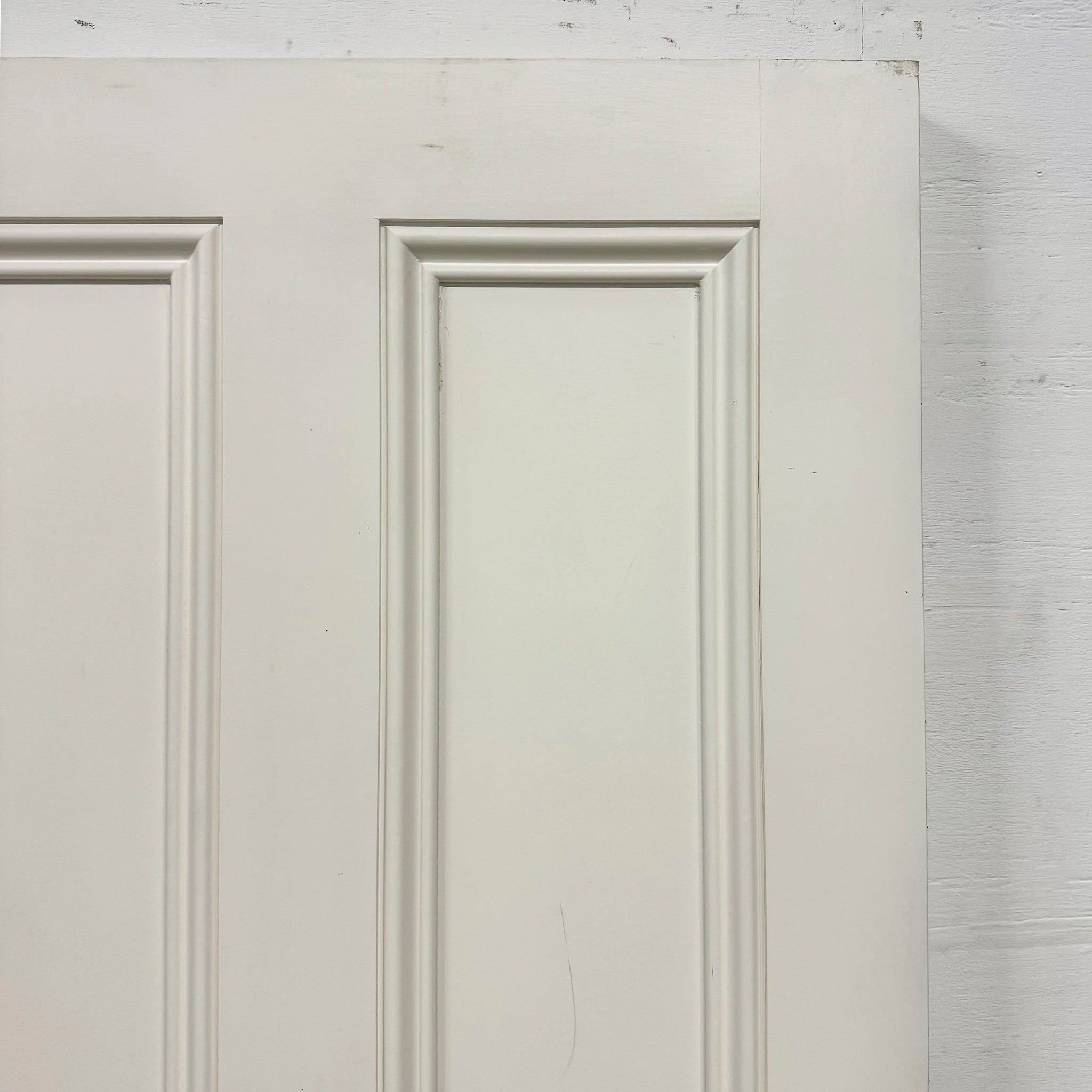 A reclaimed Victorian style door crafted from tulip wood. These elegant reclaimed doors feature a recessed two-panel design, and are being sold in their current painted state.