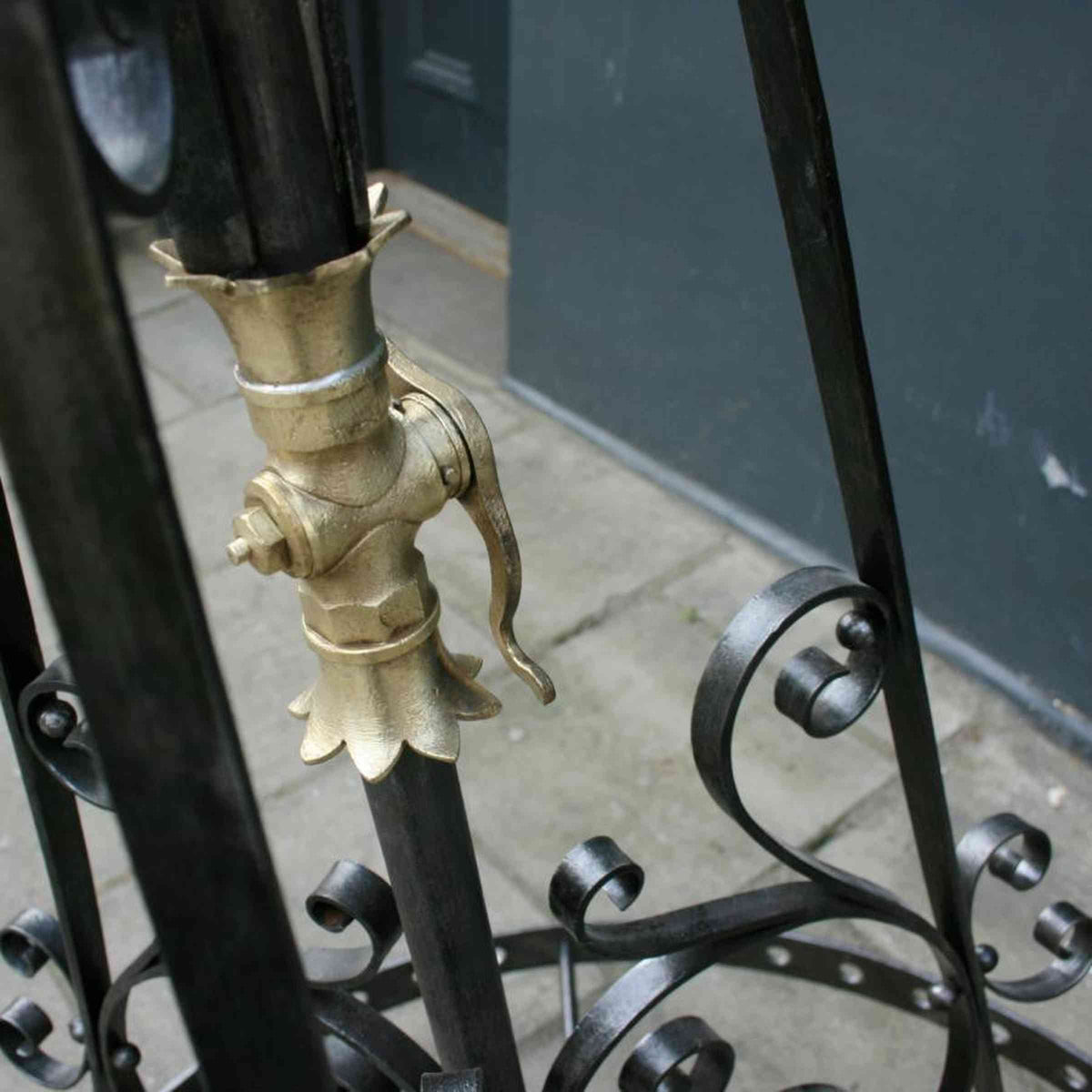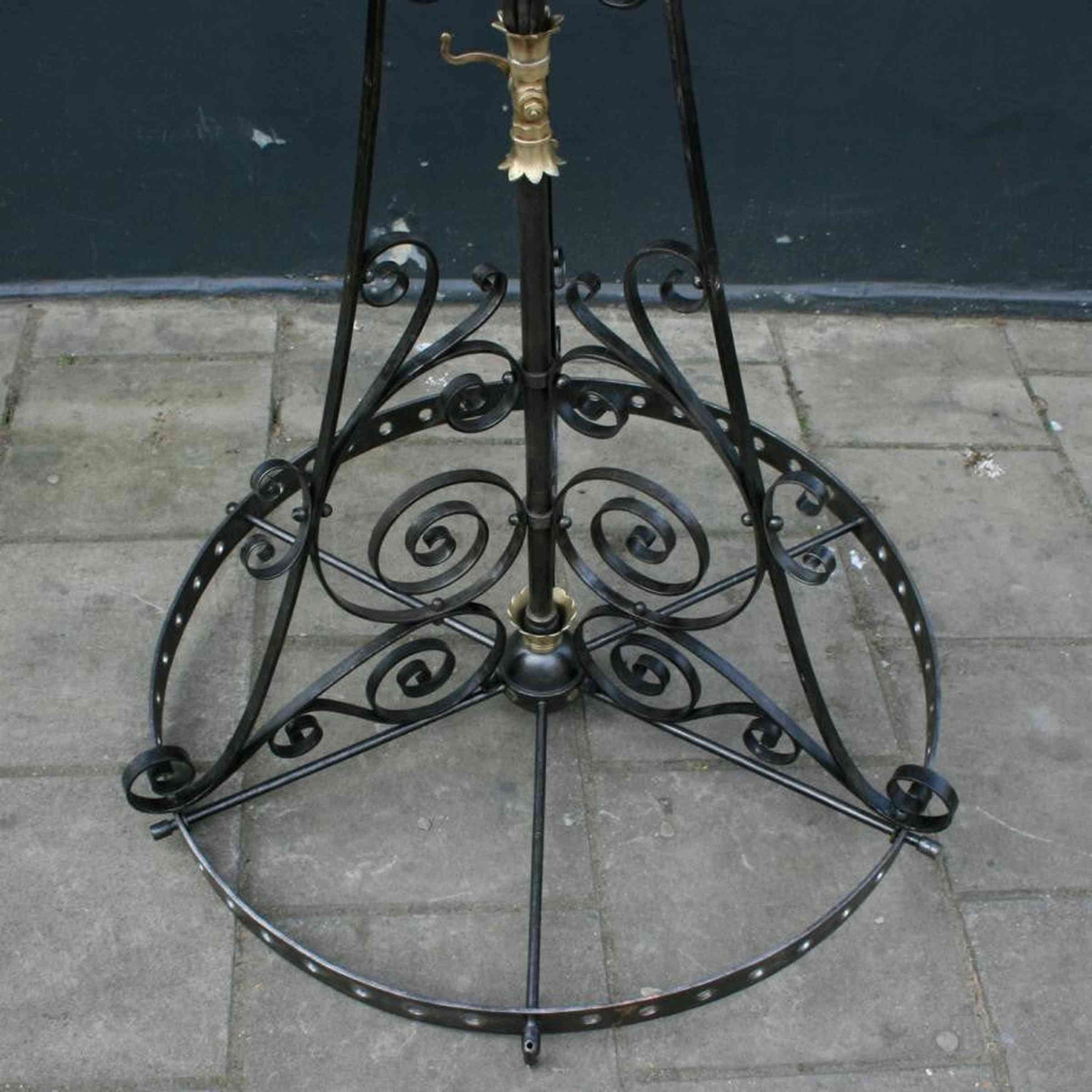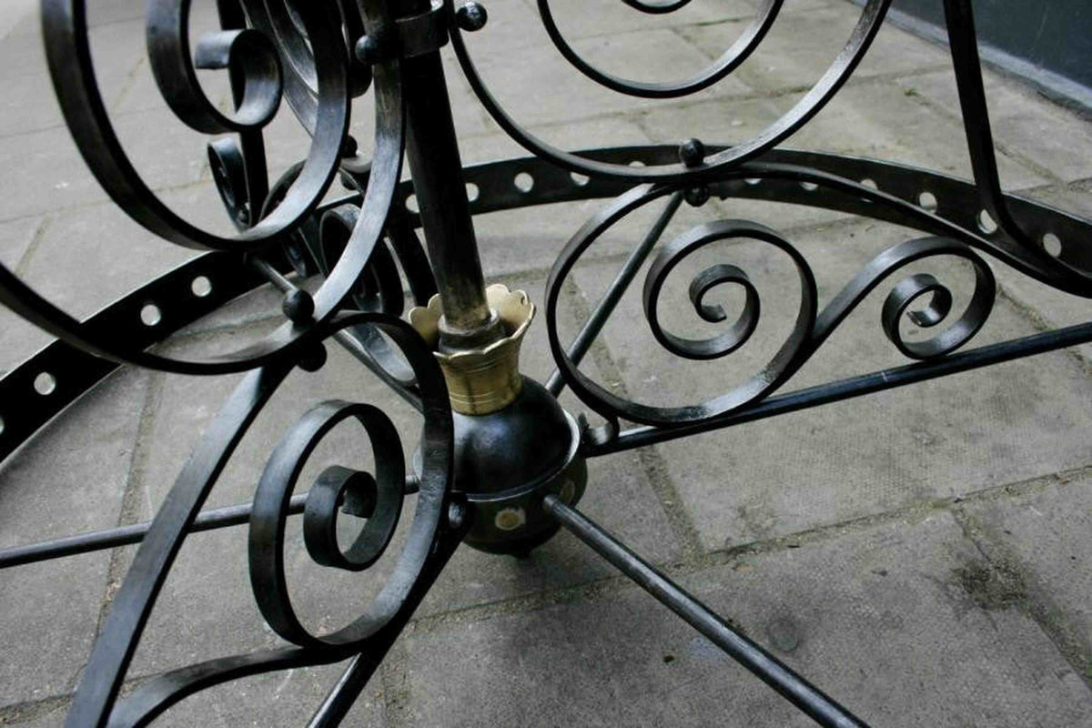 We have a number of these antique chandeliers in wrought iron. These original and impressive wrought iron chandeliers were reclaimed from a Victorian church, in West London. The chandeliers feature a grand, Gothic Revival design with wrought iron decorative details throughout. Whilst these chandeliers were originally made for gas light, for an additional cost they could be rewired for electric. Each item is priced individually.