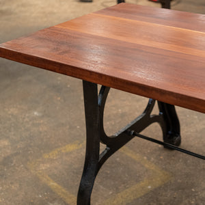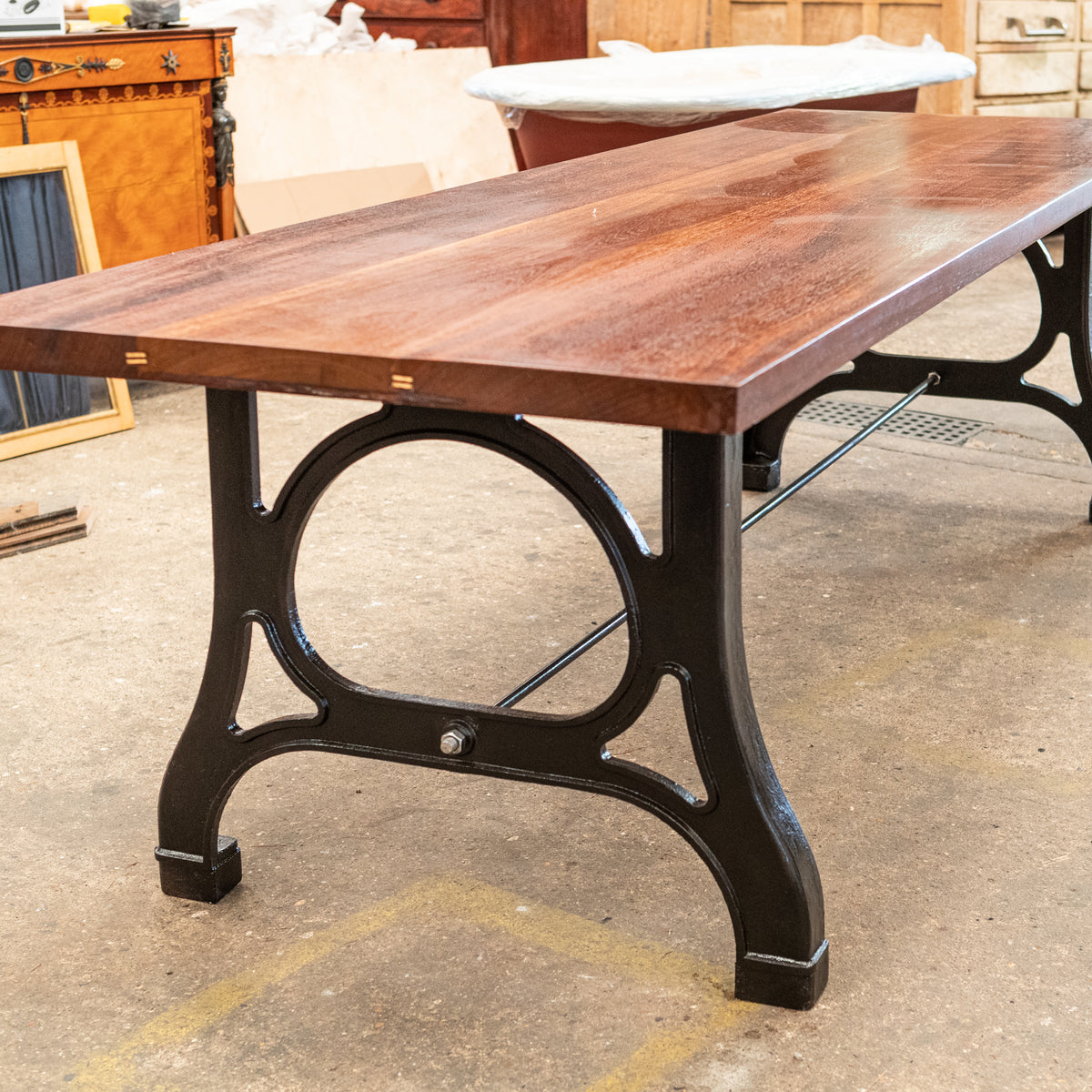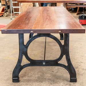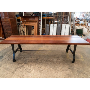 This large refectory table has been crafted from substantal reclaimed teak planks and rests upon robust industrial cast iron legs.