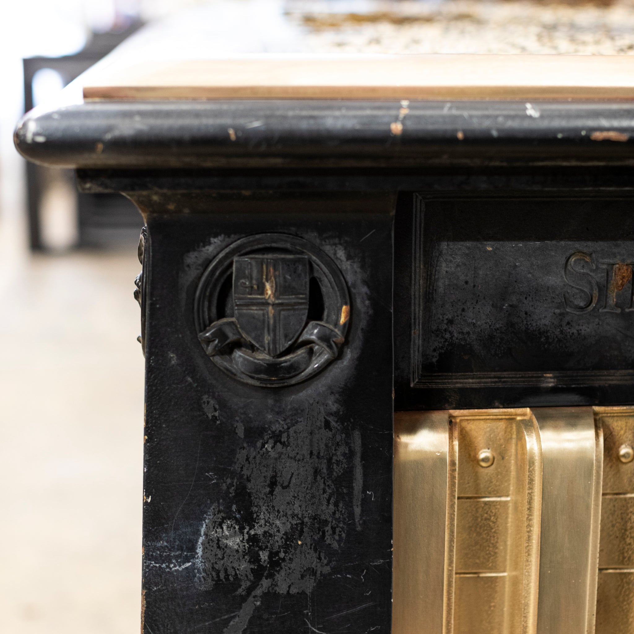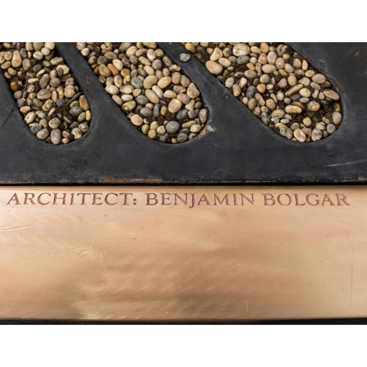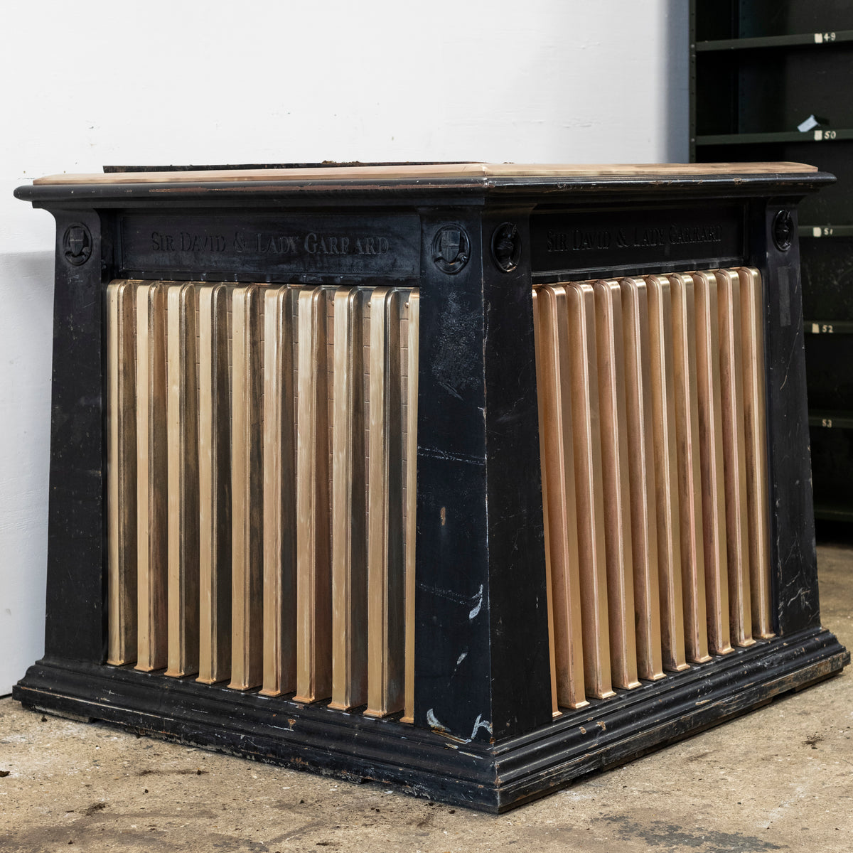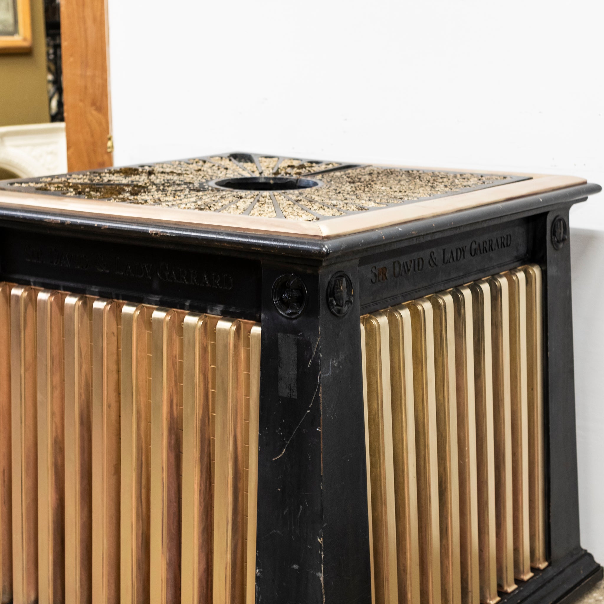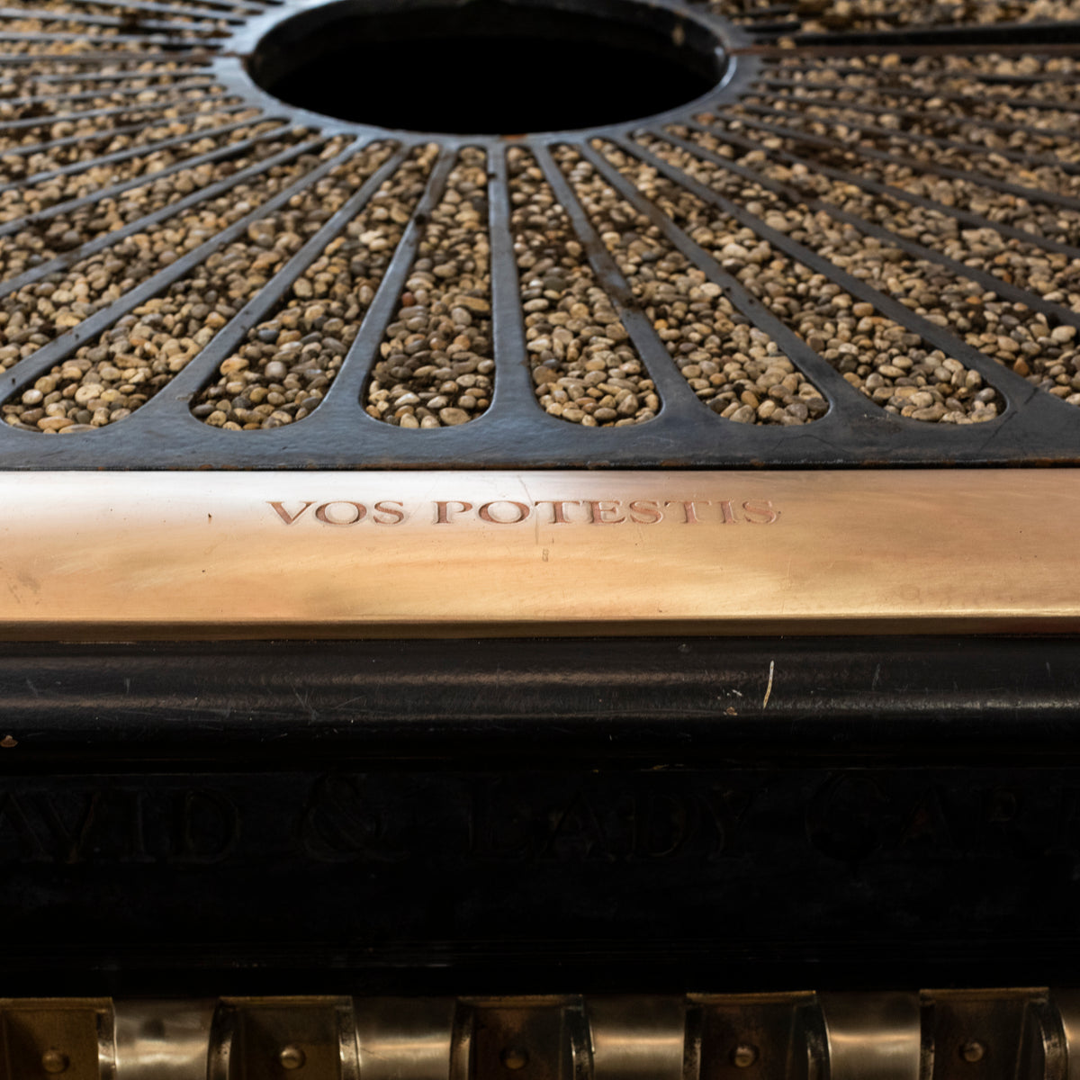 Panels incorporate the Coat of Arms of The City of London. Trees from The King's Highgrove Estate originally sat in the planters.