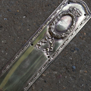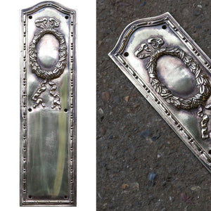 A debossed wreath with trailing ribbon and decorative border creates an attractive additional to a number of style doors.